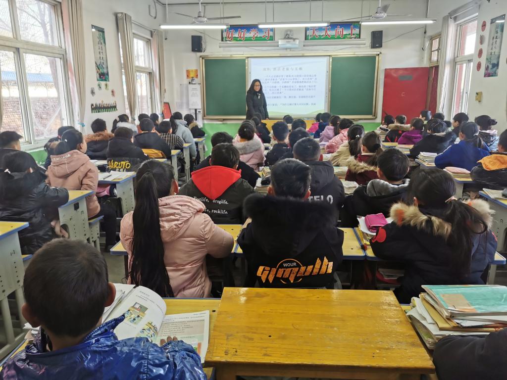 城关街道党工委委员、办事处副主任李瑞敏在城关街道张固中心小学讲思政教育课
