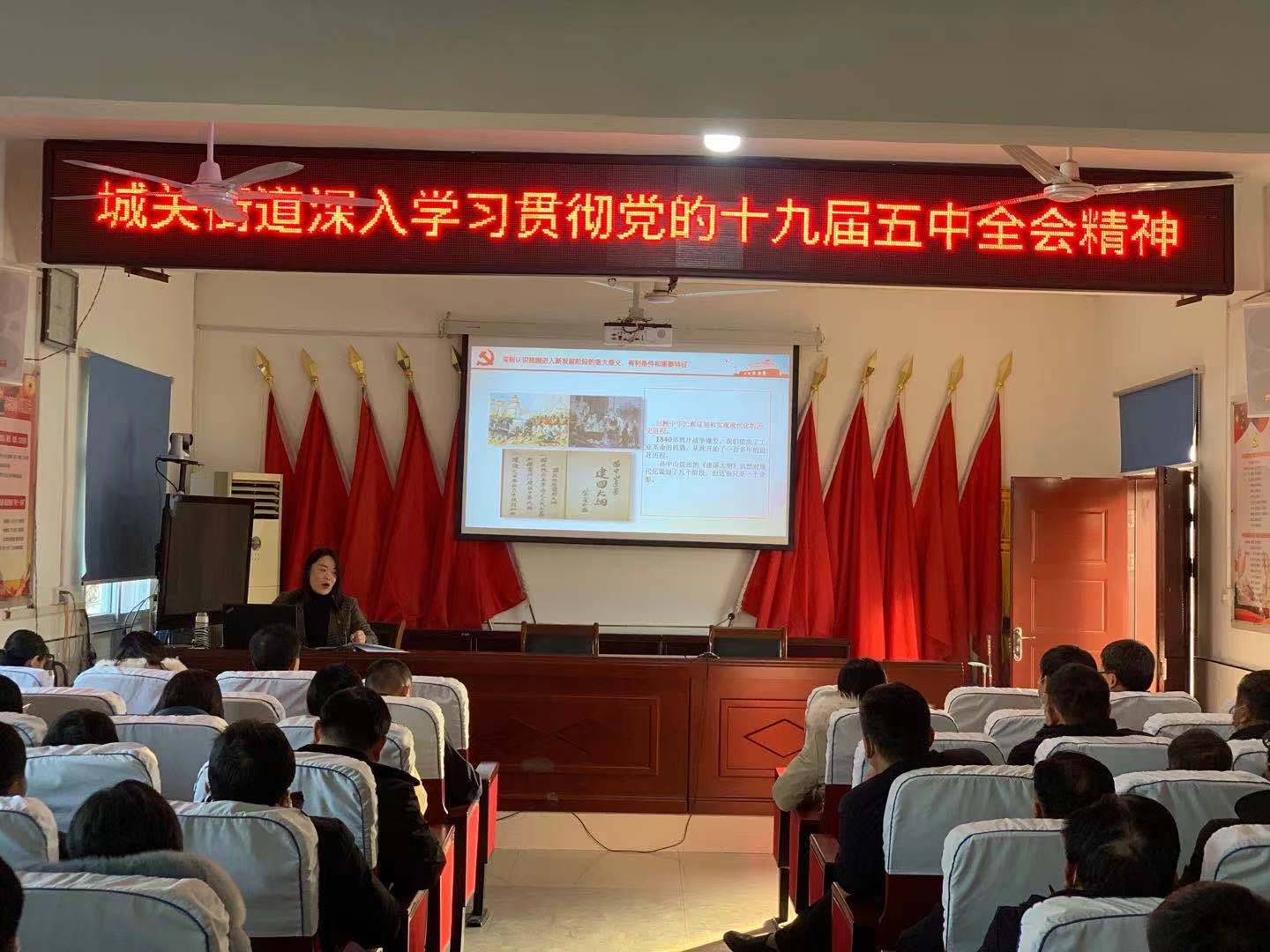 为深入学习宣传贯彻党的十九届五中全会精神,按照县委宣传部统一部署,12月15日上午,学习贯彻党的十九届五中全会精神县委宣讲团成员、县委党校讲师张卫方在城关街道办事处二楼会议室作党的十九届五中全会精神宣讲报告,街道党工委副书记张永强主持。滑东新区全体人员,城关街道办事处全体党员干部、街道直属部门负责人、47个行政村支部书记等130余人参加。