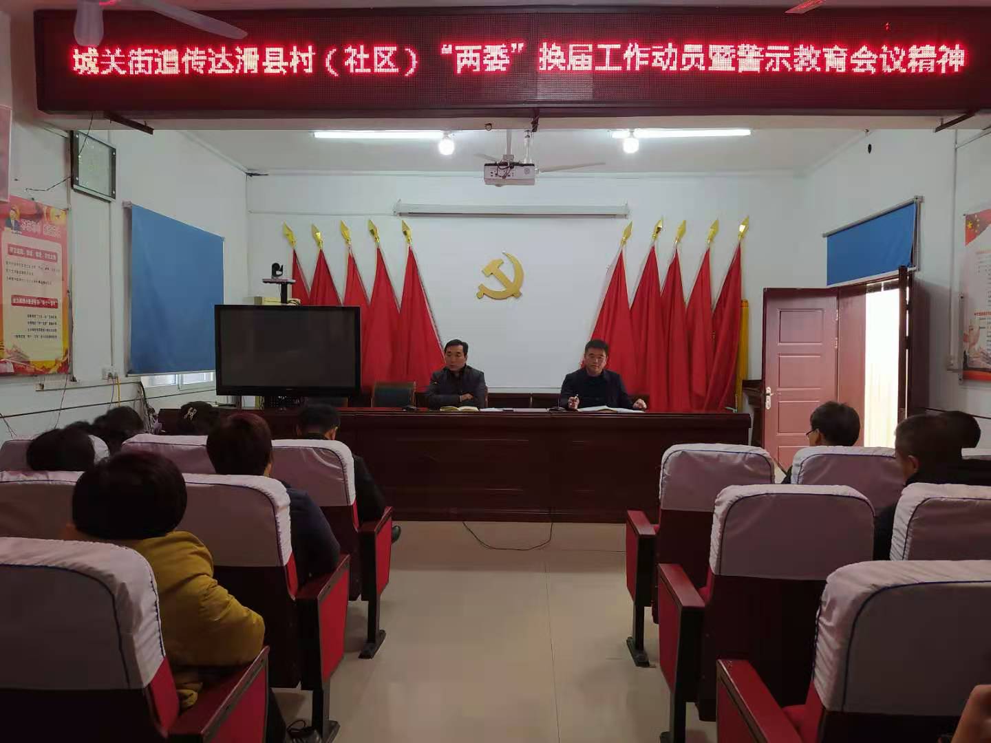 12月3日上午,城关街道组织全体干部职工在二楼大会议室召开会议,传达全县村(社区)“两委”换届动员暨警示教育大会精神,安排部署全街道村(社区)“两委”换届选举工作。