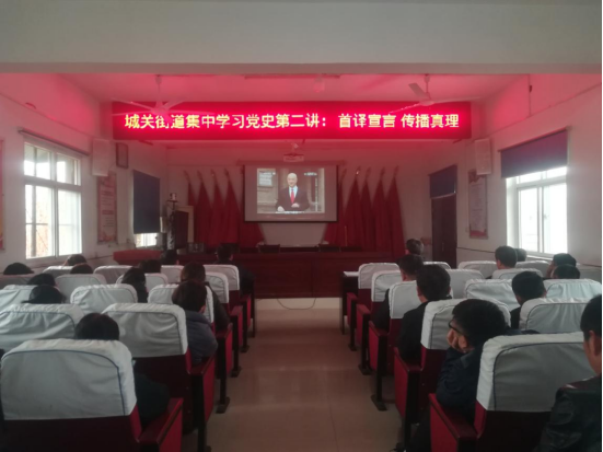 为深入推进党史学习教育,丰富党史学习教育形式和内容,3月26日下午,城关街道组织全体干部职工在机关大会议室集体观看《党史故事100讲》第二讲:首译宣言,传播真理。
