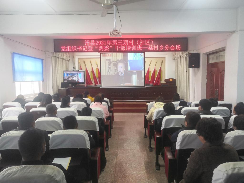 3月19日,桑村乡组织村“两委”干部在五楼会议室通过电话电话会议的方式,参加滑县2021年第三期村(社区)党组织书记暨“两委”干部培训班学习。