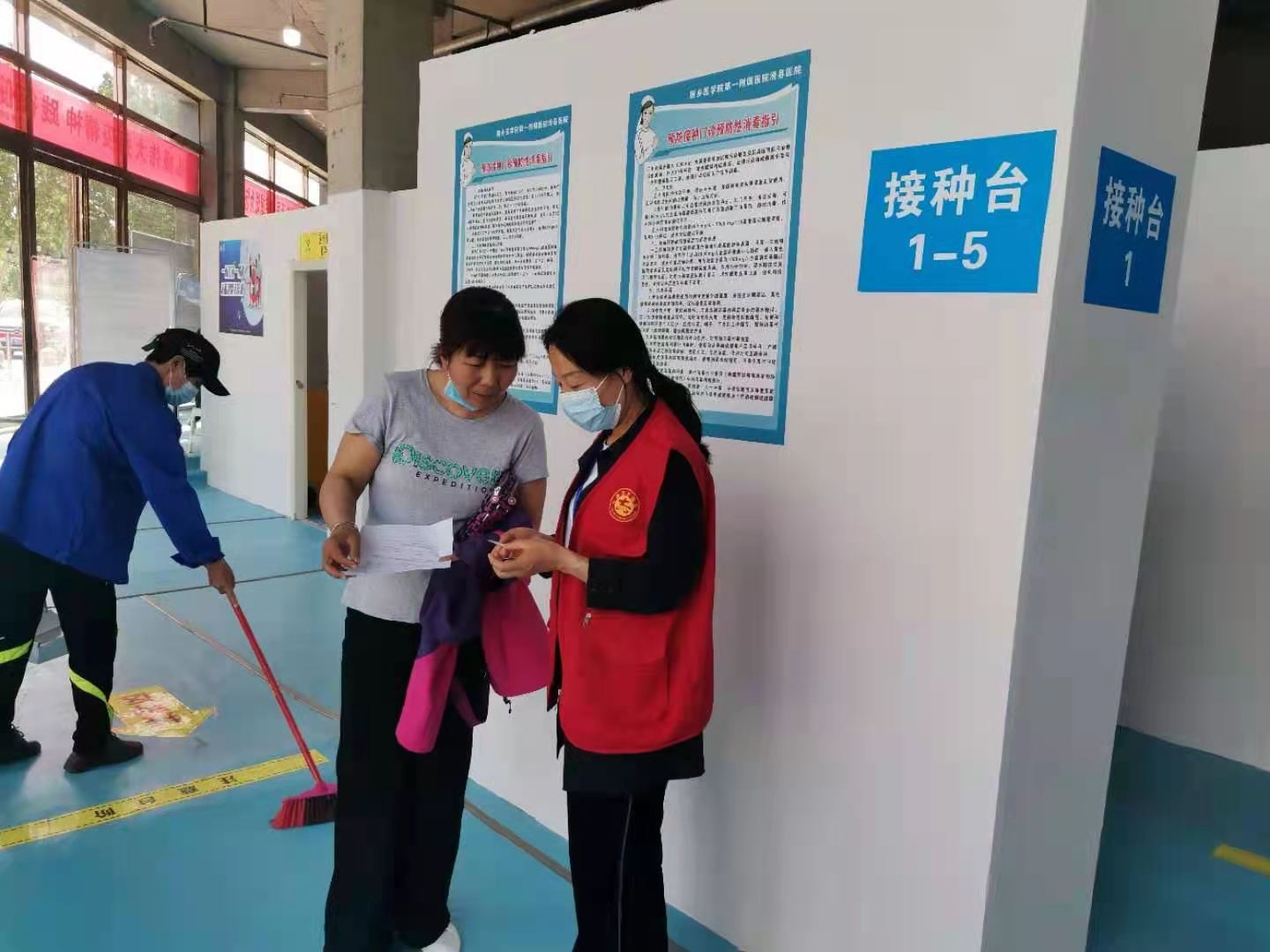 “大娘,咱到这边来排队,请戴好口罩。”在道口镇街道新冠疫苗接种现场,几位身穿红马甲的志愿者积极引导前来接种的群众。