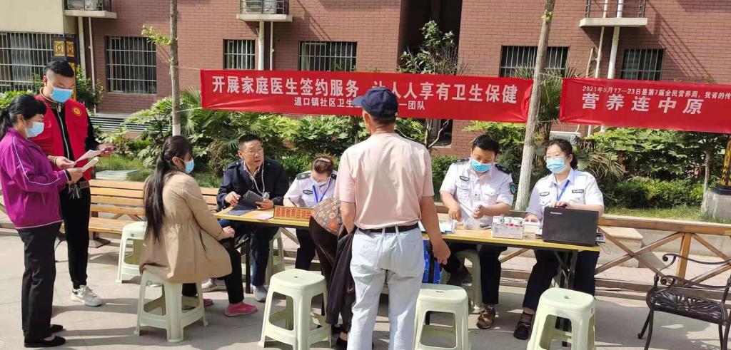 道口镇街道社区卫生服务中心派出6个医务人员小组,在各个社区开展家庭医生签约服务活动,街道各社区志愿者积极参与,使居民在家门口就能享受到便捷的医疗卫生服务。