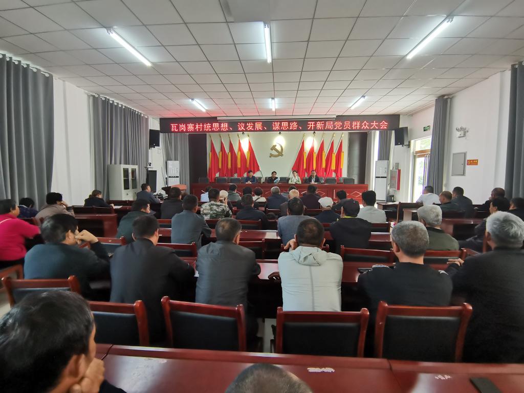 为准确把握当前发展机遇,科学谋划近期工作,推进瓦岗寨乡经济社会全面发展,近日,瓦岗寨乡组织瓦岗寨村全体党员及群众代表在乡政府大会议室召开了瓦岗寨村统思想、议发展、谋思路、开新局党员群众大会。党委书记张彦林,党委副书记、政府乡长薛洋,主任科员闫化伟、党委副书记韩书博,派出所和集镇区相关人员参加了会议。会议由党委副书记、政府乡长薛洋主持,党委书记张彦林做了重要讲话。会议回顾了瓦岗历史,研判了当前形势,理出了发展思路,提出了行动要求。