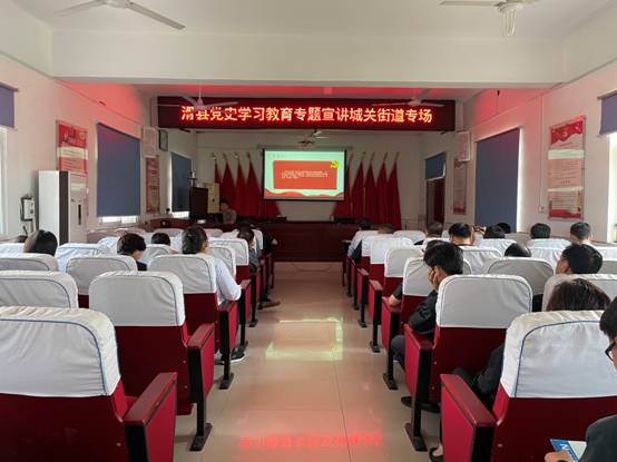 按照县委党史专题宣讲工作安排,5月21日上午,县委宣讲团走进城关街道为党员干部作了《学习百年辉煌历史,汲取继续前进的智慧和力量》的主题宣讲。机关全体党员干部及下辖各社区(村)支部书记110余人参加。