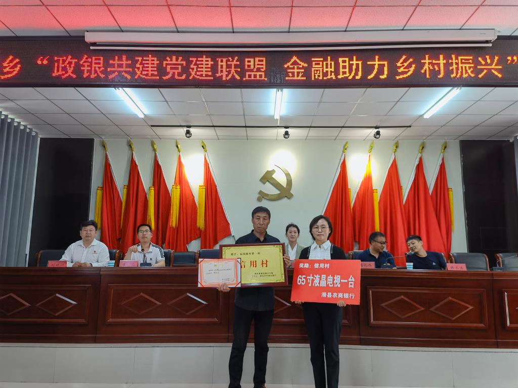 启动会上,党委副书记孟凡宣读了《关于在滑县农村商业银行开展“政银共建党建联盟 金融助力乡村振兴”实施方案的通知》。随后,瓦岗寨乡与县农商行、梦一村与县农商银行瓦岗支行分别签订了党建共建合作协议。县农商银行向试点信用村党支部书记颁发了“三农”顾问聘书,并向信用村、信用户授牌,颁发奖品。县农商银行党委委员、监事长李海利就“党建+金融”工作作了讲话。