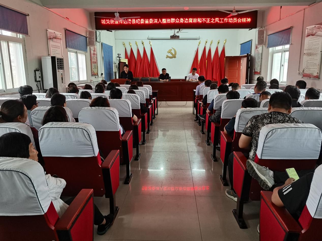 6月1日上午,城关街道组织全体干部职工召开会议,传达中共滑县纪委监委深入整治群众身边腐败和不正之风工作动员会精神。