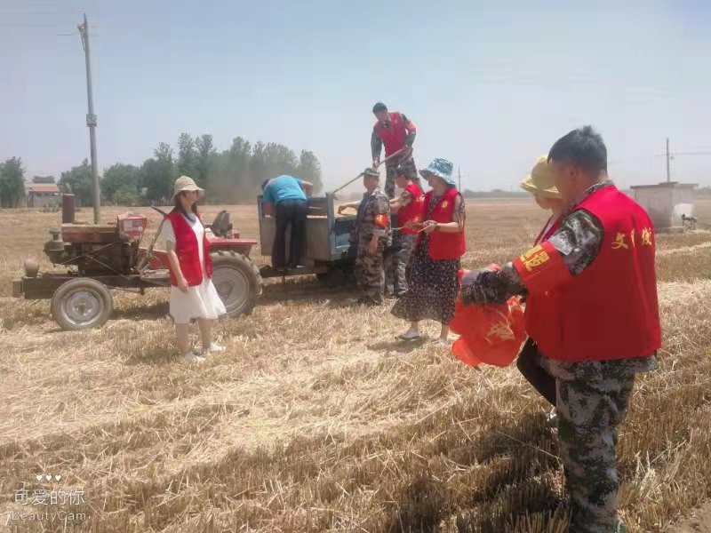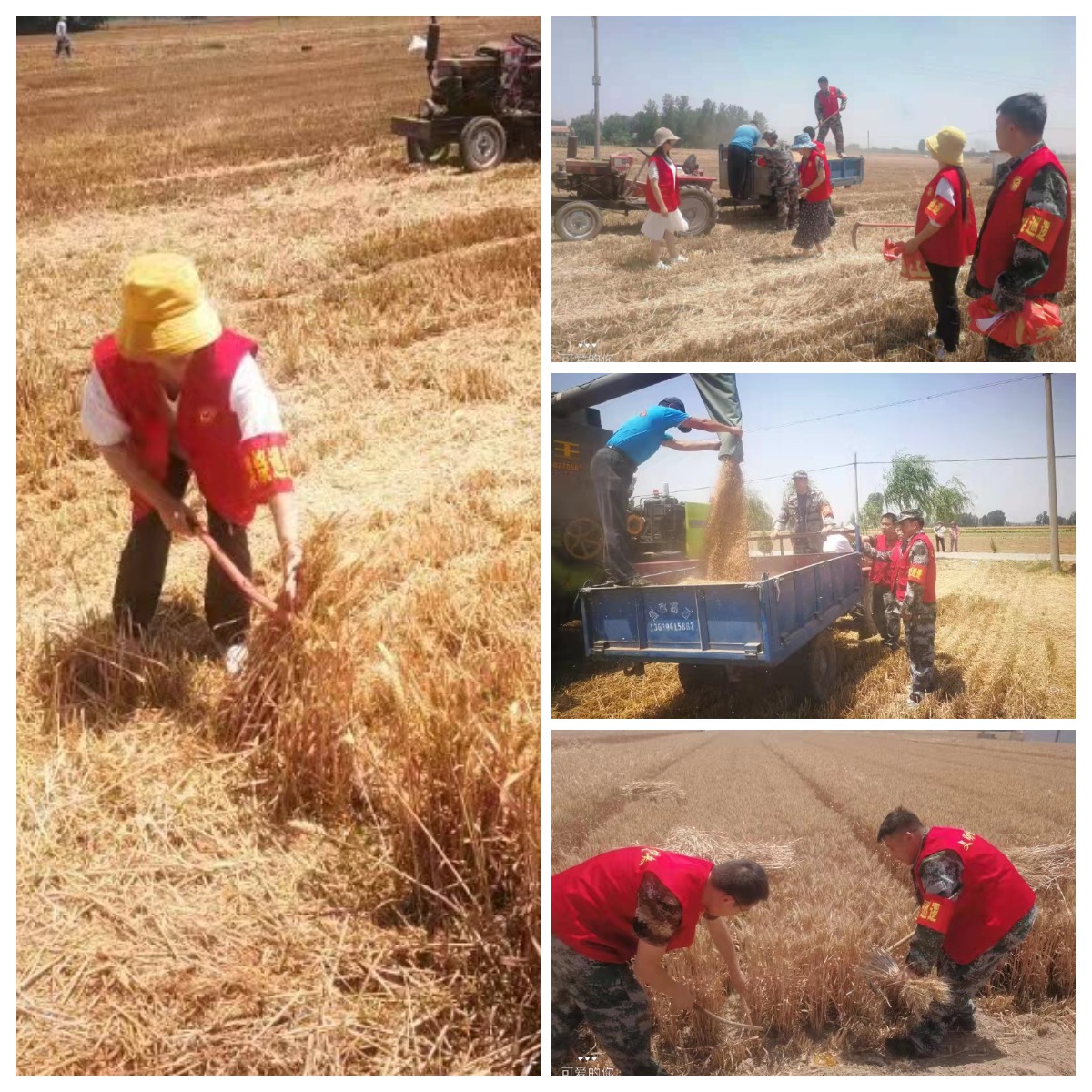志愿者们穿着红色的志愿者马甲,手持镰刀、铲子等劳动工具,分工明确,帮助群众收麦子、装麦子,还播种了玉米,大家充分发扬了“不怕苦、不怕脏、不怕累”的精神,有些村民看见后自发加入了志愿队伍。