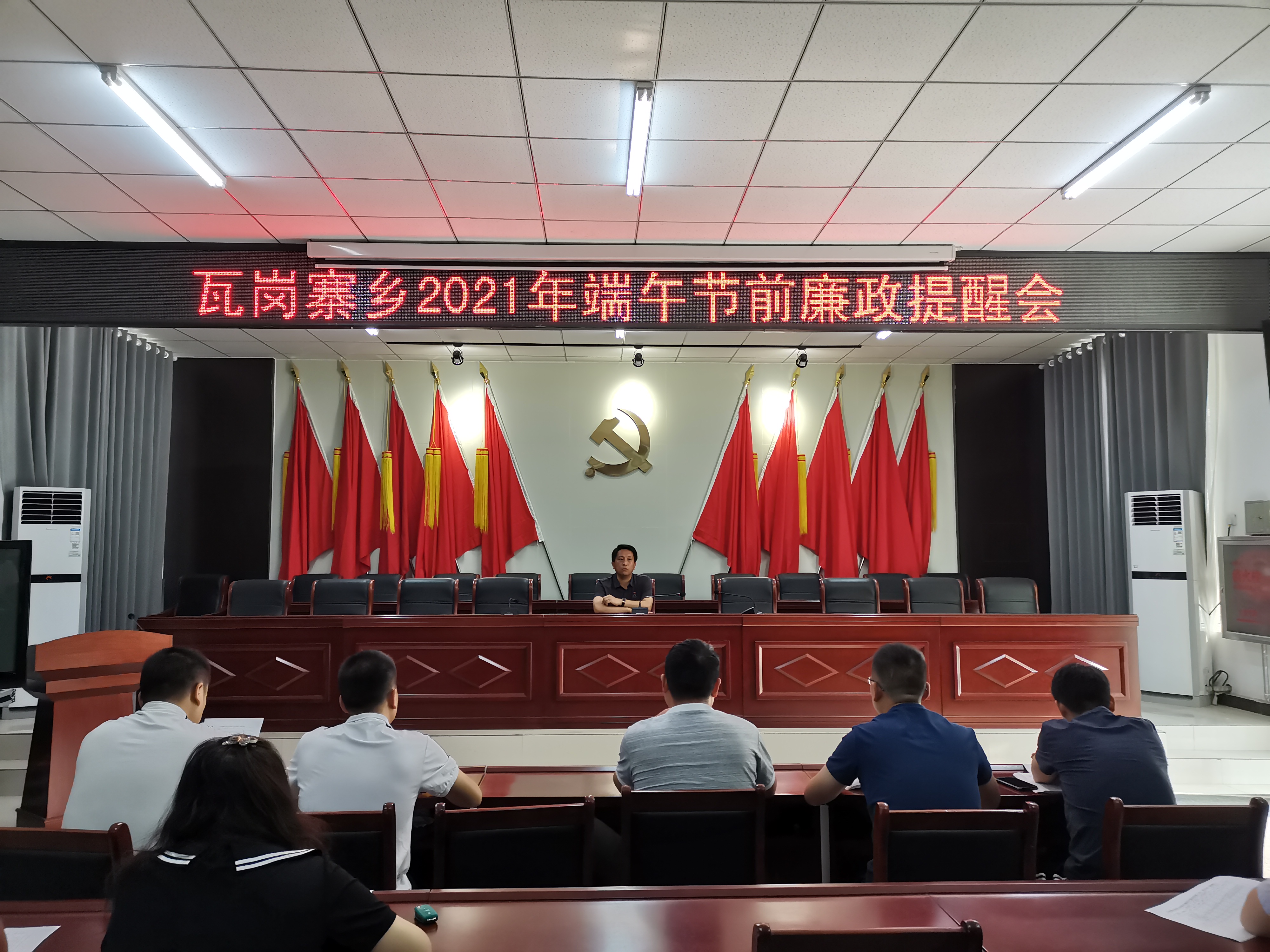 端午佳节将至,为进一步巩固落实中央八项规定精神成果,持之以恒治“四风”、树新风,提醒广大党员干部明纪律、知敬畏、存戒惧、守底线,营造务实节俭、文明廉洁营造风清气正的节日氛围,6月11日,瓦岗寨乡召开端午节前廉政提醒会。
