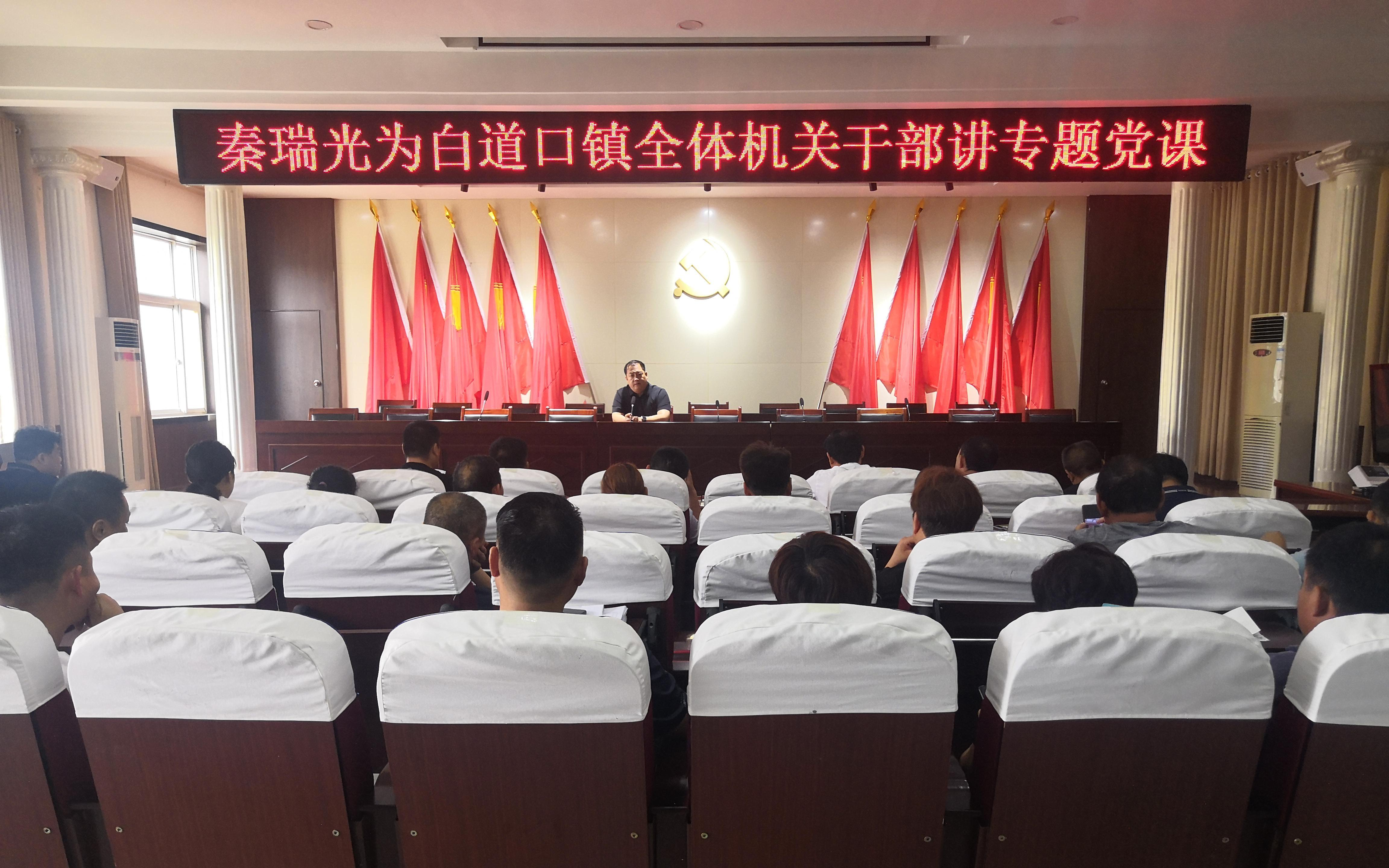 6月15日白道口镇党委书记秦瑞光率先为全体机关干部讲专题党课。讲课过程中,秦瑞光用通俗易懂的话语围绕党的四个历史时期特别是十八大以来党的发展进行了讲解。通过重温中国共产党诞生、发展到现在的历程,使广大机关干部充分认识到中国共产党是中国人民前所未有的领导力量,只有坚持中国共产党的领导才能发展中国。