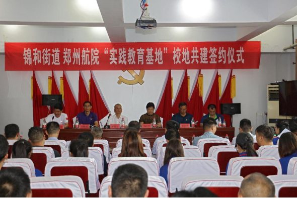 在“实践教育基地”签约仪式上,宋培哲同志就产业集聚区、锦和街道发展现状进行了简要介绍,高度肯定了郑州航院的办学理念,他表示,双方要以共建结对为载体,以深化共建内容为主线,在教育教学、党建交流、社区建设、产学研等方面进行深度交流合作,为推动融合发展探索新路径、打造新亮点。邓晓成同志在随后的讲话中表示,感谢产业集聚区、锦和街道能够为同学们提供此次实践机会,学院会充分利用此次机会认真组织实践活动,让此次活动落到实处。