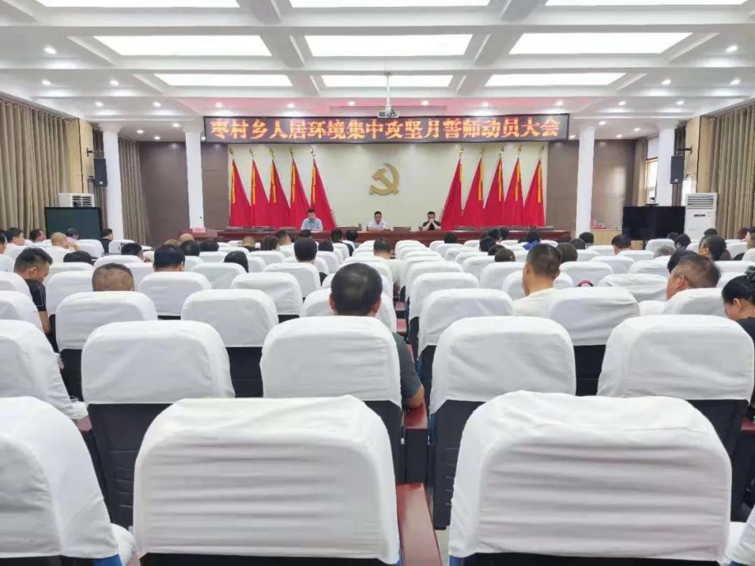 为全力以赴补短板、强弱项,坚决打赢农村人居环境整治攻坚战,7月26日上午,枣村乡组织机关全体及各村支部书记,召开人居环境集中攻坚月誓师动员大会。