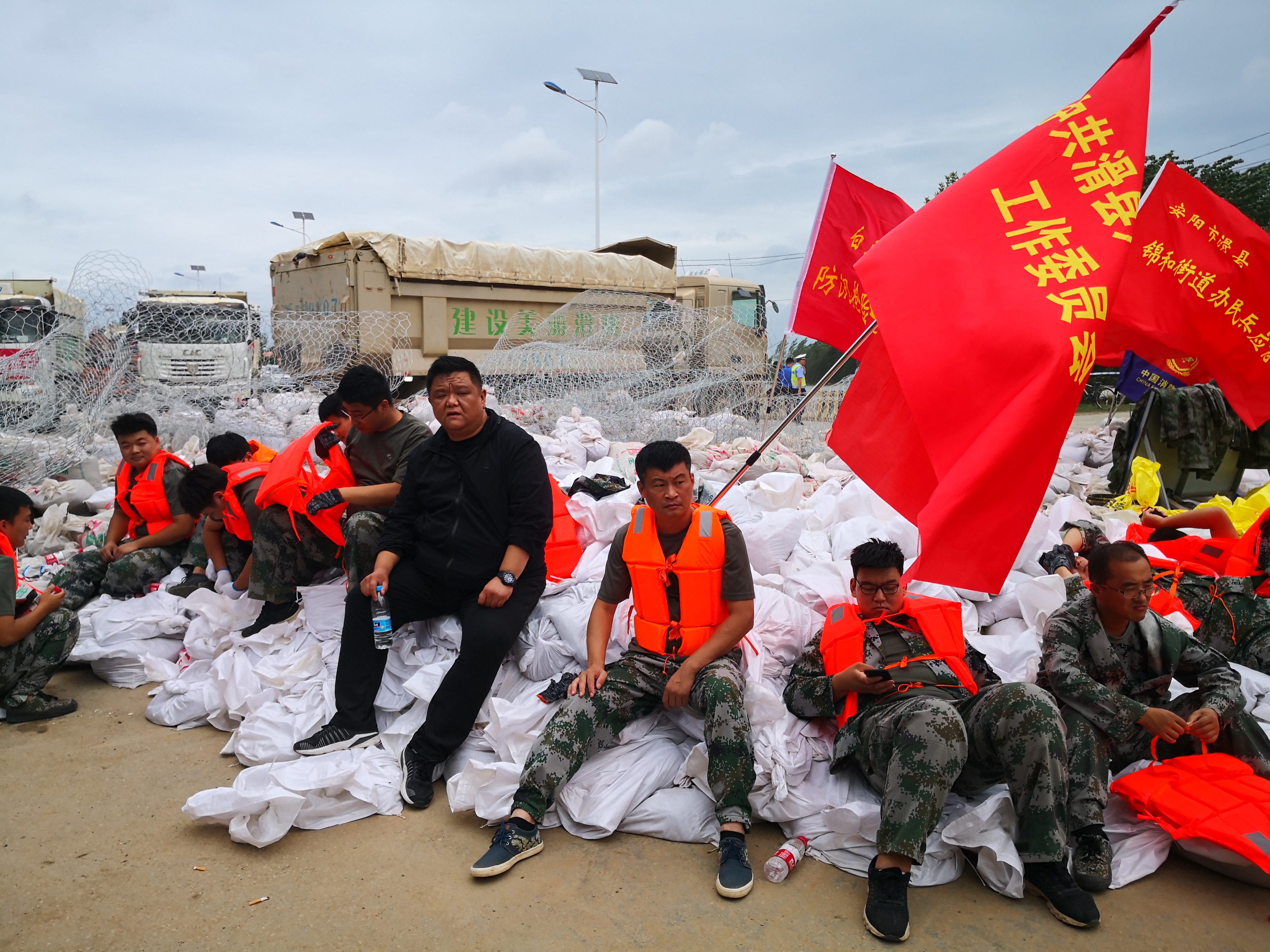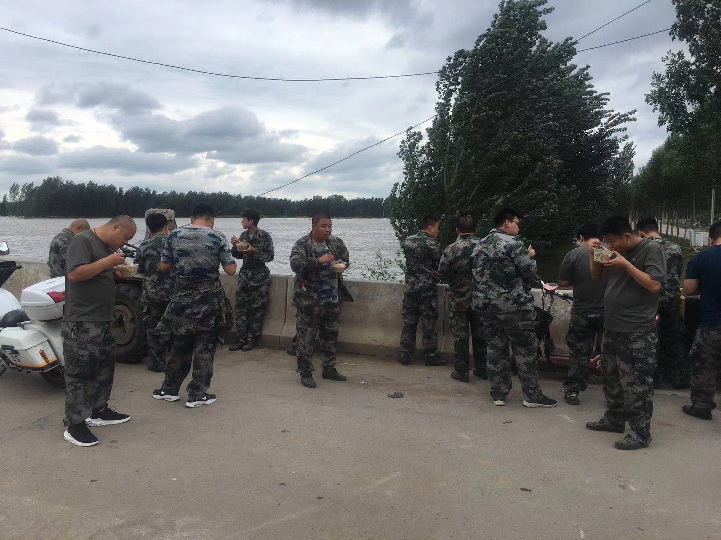 从黑夜到白天,不管有多难,相信的是自己的双手。29日上午,他们不知疲倦在西环卫河大桥装沙袋、扎铁笼、搬运石板。奋战15小时后,他们才吃上一口热饭。