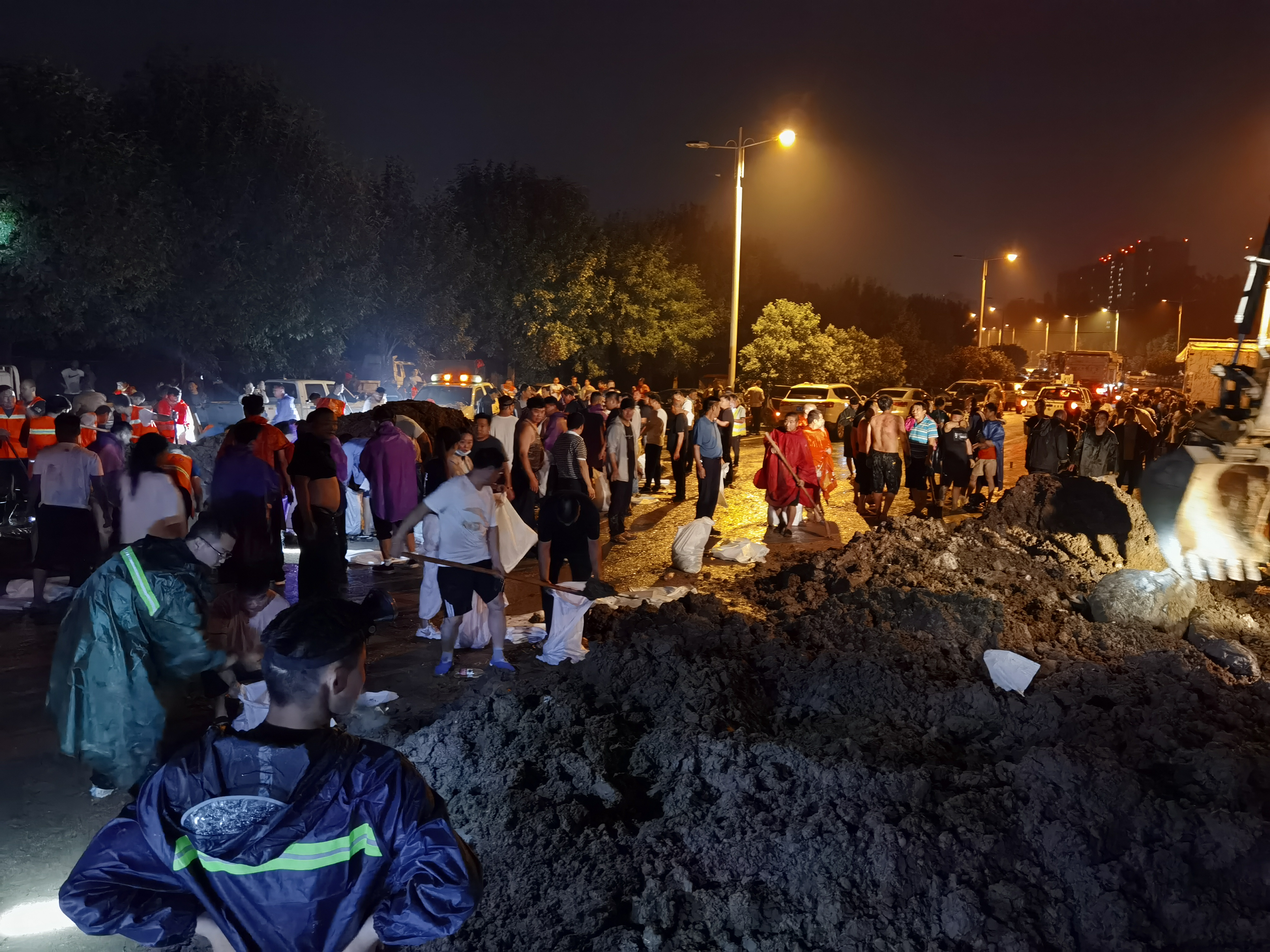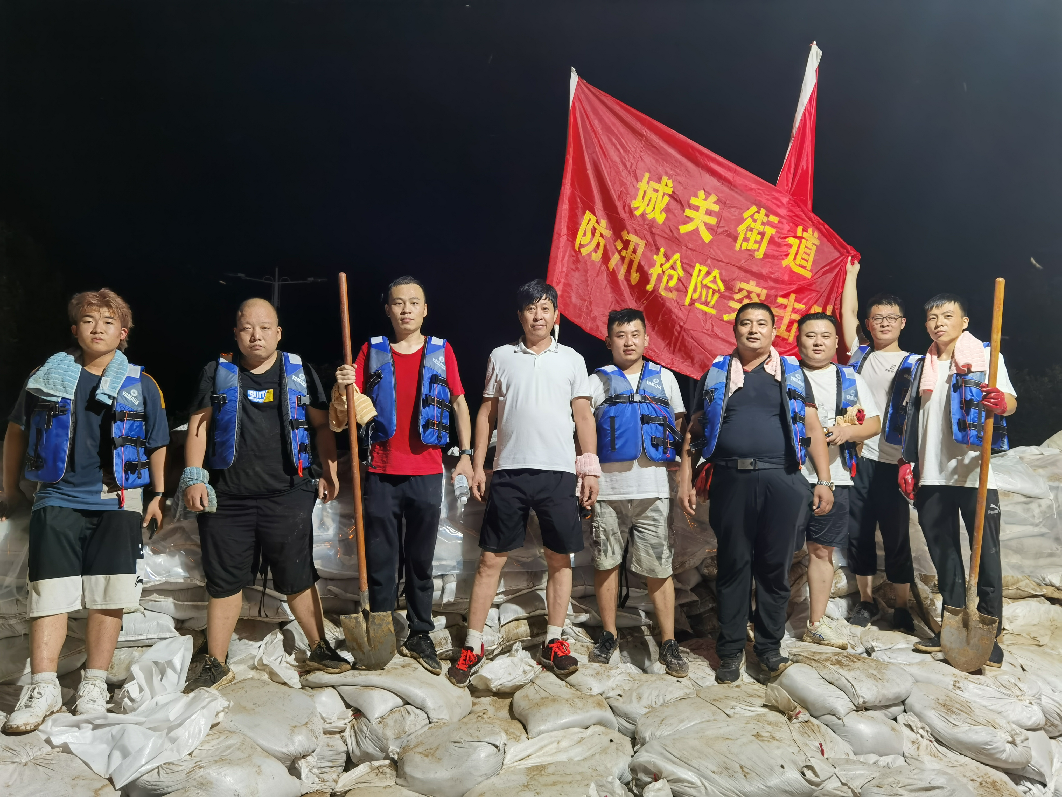 7月25日、26日上午,按照街道办部署,支部书记朱鹤生,村委主任王国强又带领一街第二梯队在街道办待命,突击队员们纷纷请命,要求到防汛第一线!26日晚,街道办命令我们突击队参加加固大堤任务!在街道党工委人大主席张永强、副主任李瑞敏的带领下,队员们斗志昂扬,冒着随时都有可能滑下水的危险,率先完成任务!
