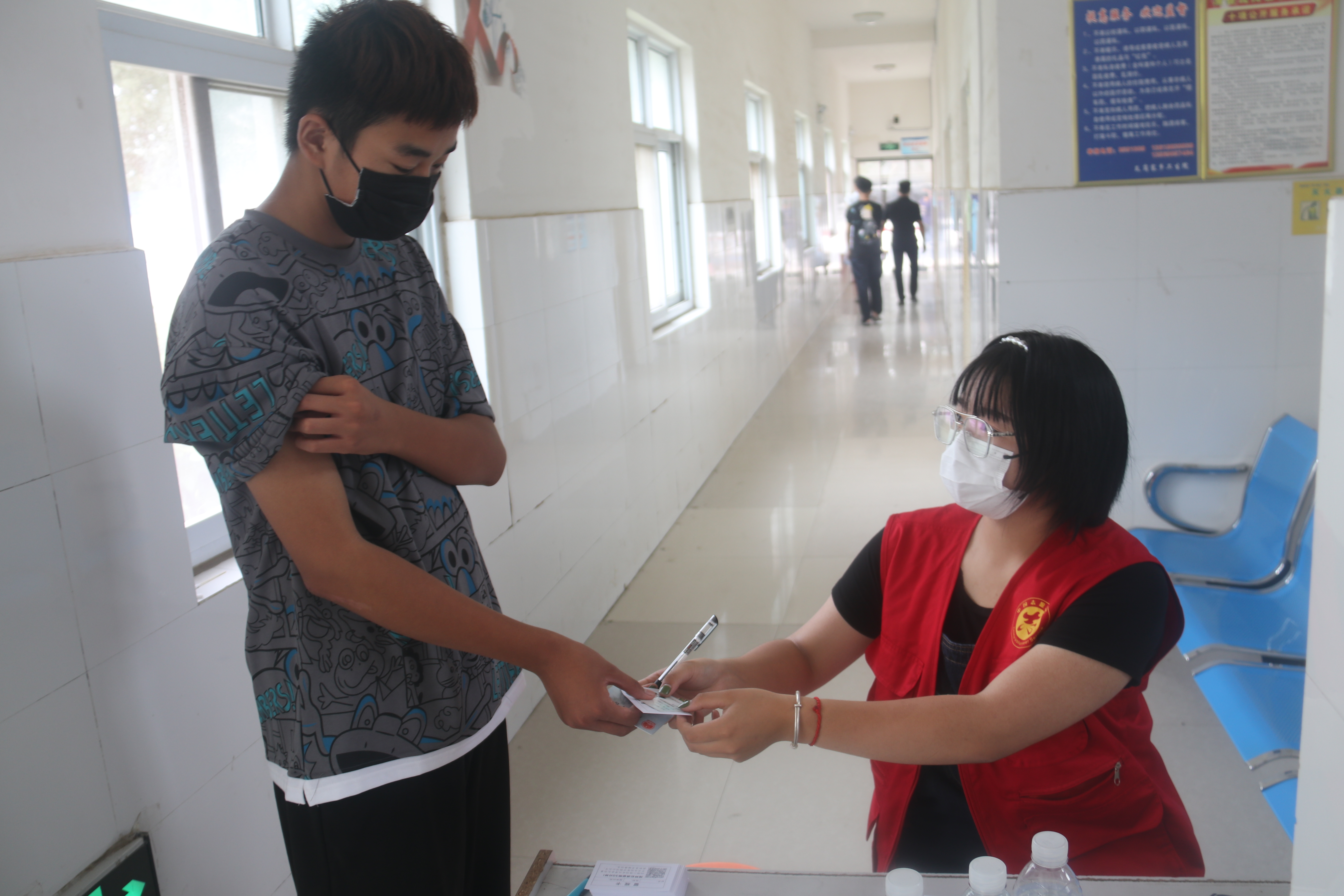 志愿者在疫苗接种现场,分工协作、各司其职,核对登记身份信息,热情细致地对前来接种疫苗的群众进行引导。
