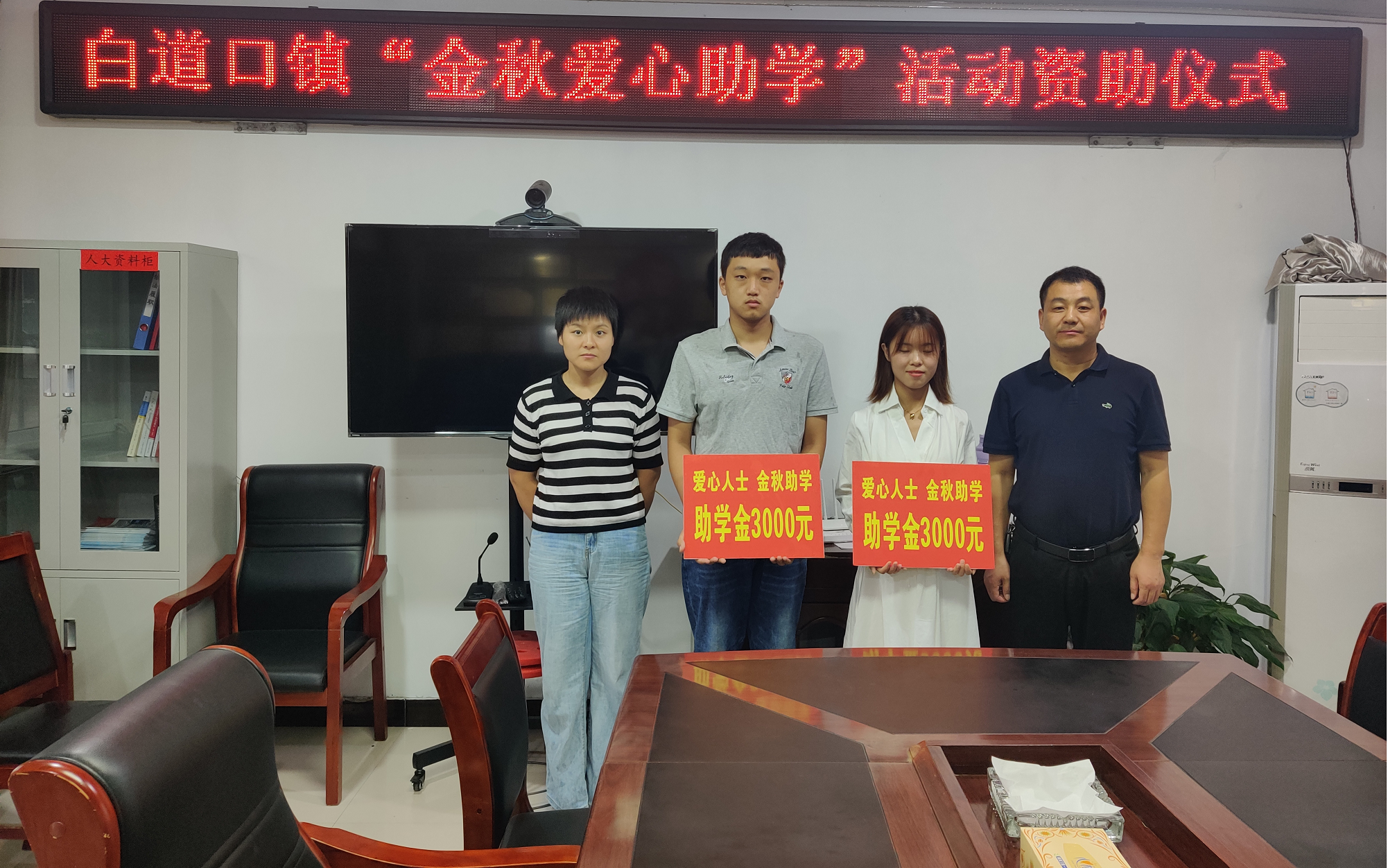 爱在金秋,助学圆梦。8月31日下午,白道口镇2021年“金秋爱心助学”活动资助仪式在镇小会议室举行,工会主席赵峥,爱心企业负责人以及受资助学生参加此次活动。