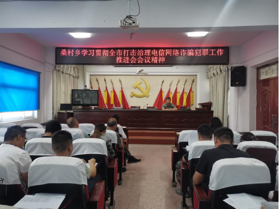 9月10日上午,桑村乡组织机关全体召开专门会议,学习贯彻全市打击治理电信网络诈骗犯罪工作推进会会议精神。
