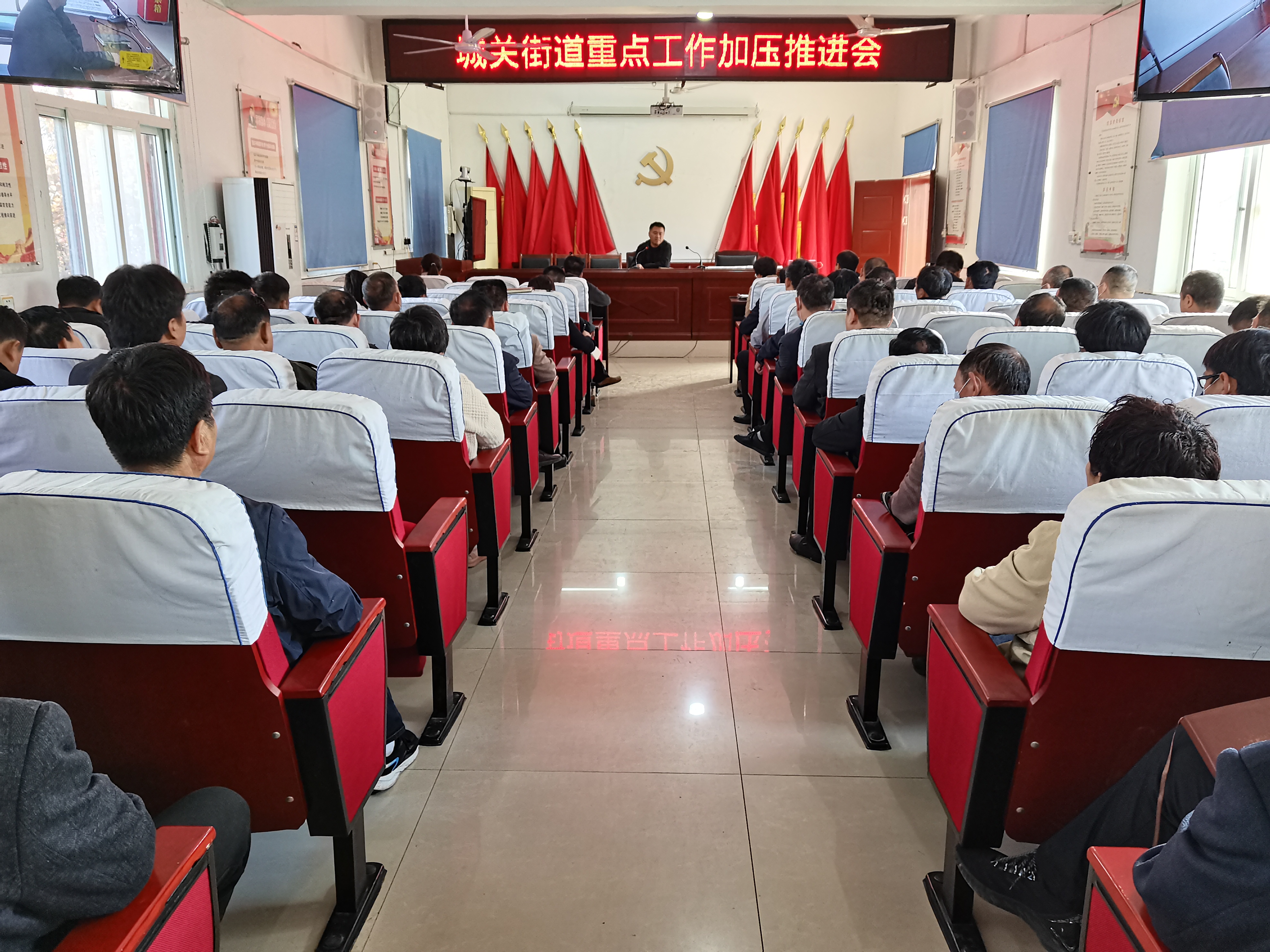 10月12日上午,城关街道组织全体班子成员、各工作区区长、各村(社区)支部书记及街道直属部门负责人召开工作会议,就城关街道当前重点工作进行再安排再部署再加压。
