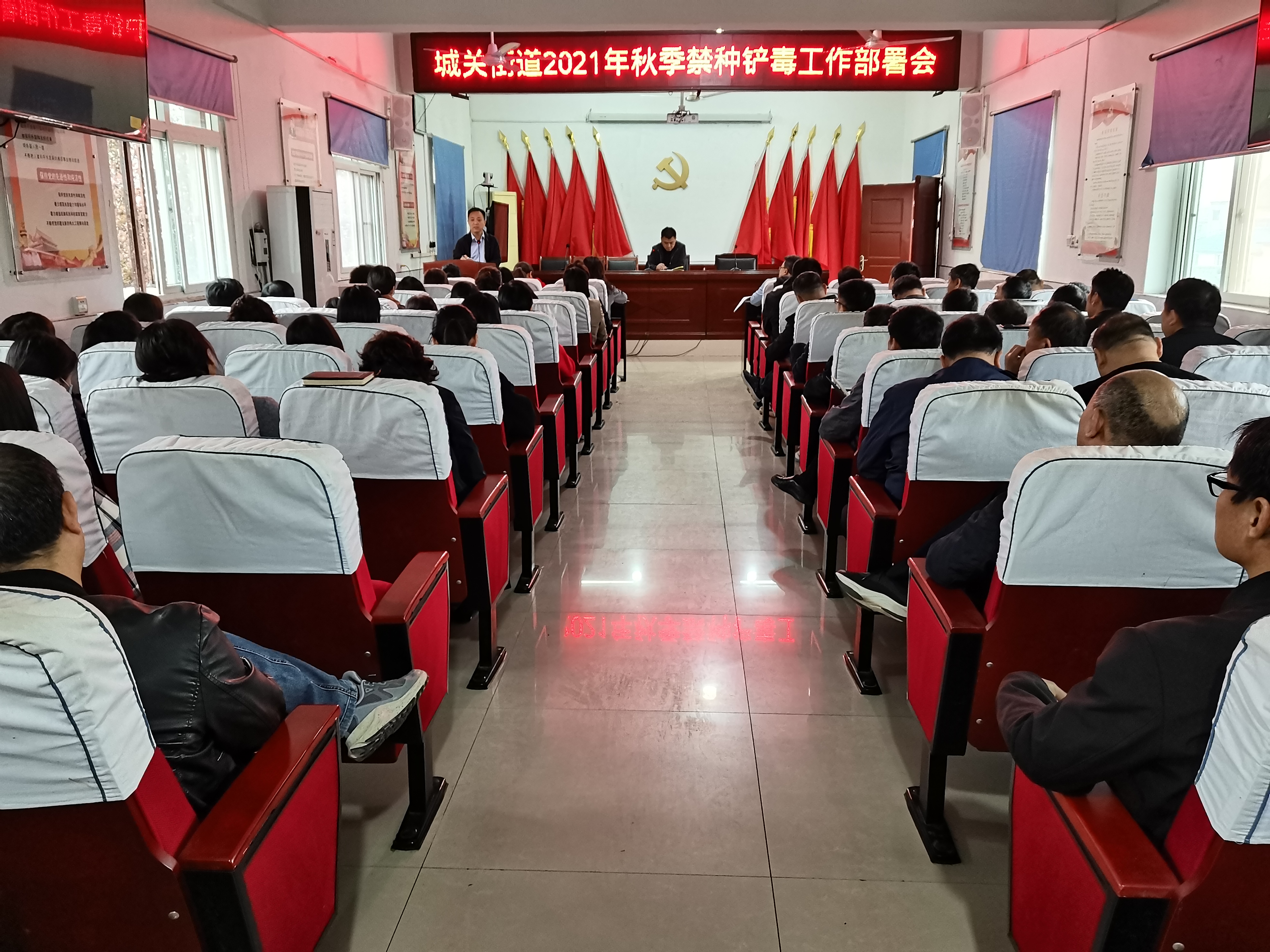 一是提高认识,压实工作责任。城关街道召开机关干部秋季禁种铲毒工作部署会,要求各村、社区提高认识,夯实责任、明确任务。二是广泛宣传,加强禁毒禁种意识。利用村室广播、悬挂条幅、发放宣传单、微信群等多种形式深入开展宣传,使“种毒违法”的法制观念深入人心。三是深入走访,严格调查摸排。各村、社区人员深入田间地头、家庭院落以及空闲院落、等区域进行重点排查,切实做好秋季铲毒禁种工作。
