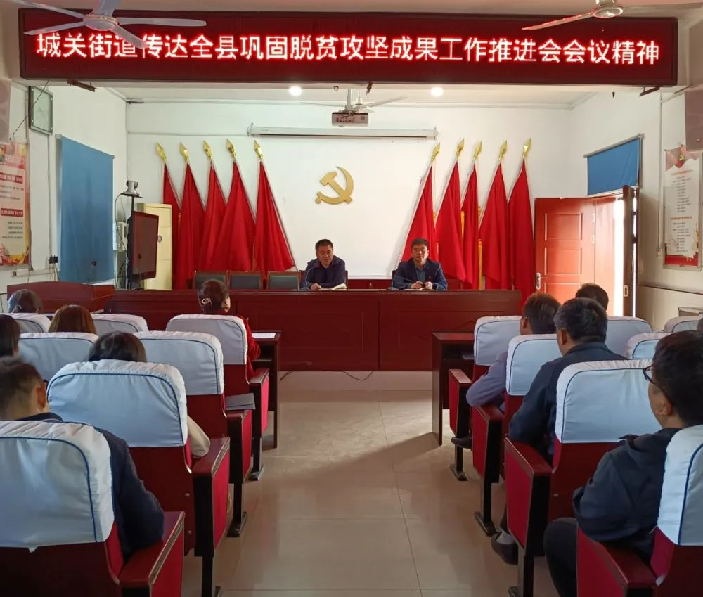 10月17日上午,城关街道组织全体机关干部、驻村第一书记、脱贫攻坚指导员在二楼会议室召开会议,传达全县巩固脱贫攻坚成果工作推进会会议精神。会上,街道党工委书记张红星传达了会议精神,针对下一步巩固脱贫攻坚成果工作,结合城关街道户、村、乡三级层面存在的问题,提出具体整改要求。