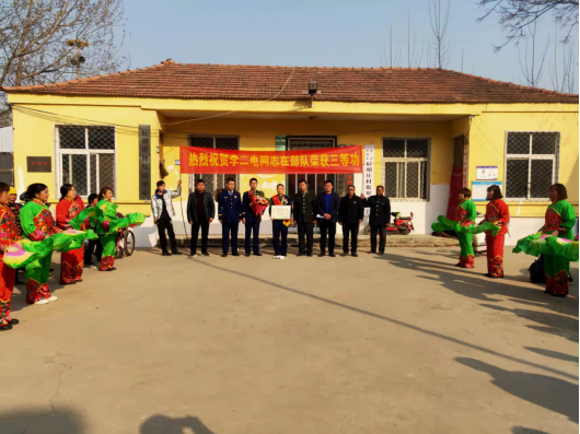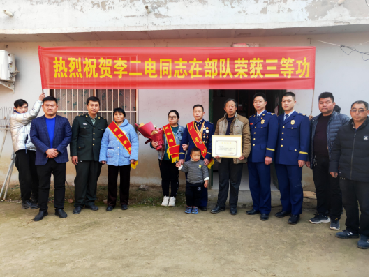 11月26日上午,桑村乡后胡庄村锣鼓喧天、热闹非凡,开封市消防支队、县消防队、桑村乡政府等单位有关领导以及该村“村两委”干部一行6人,来到荣立三等功的消防官兵李二电家中,为其家属送去立功喜报和慰问品,表达党委、政府对消防官兵家属的亲切关怀。