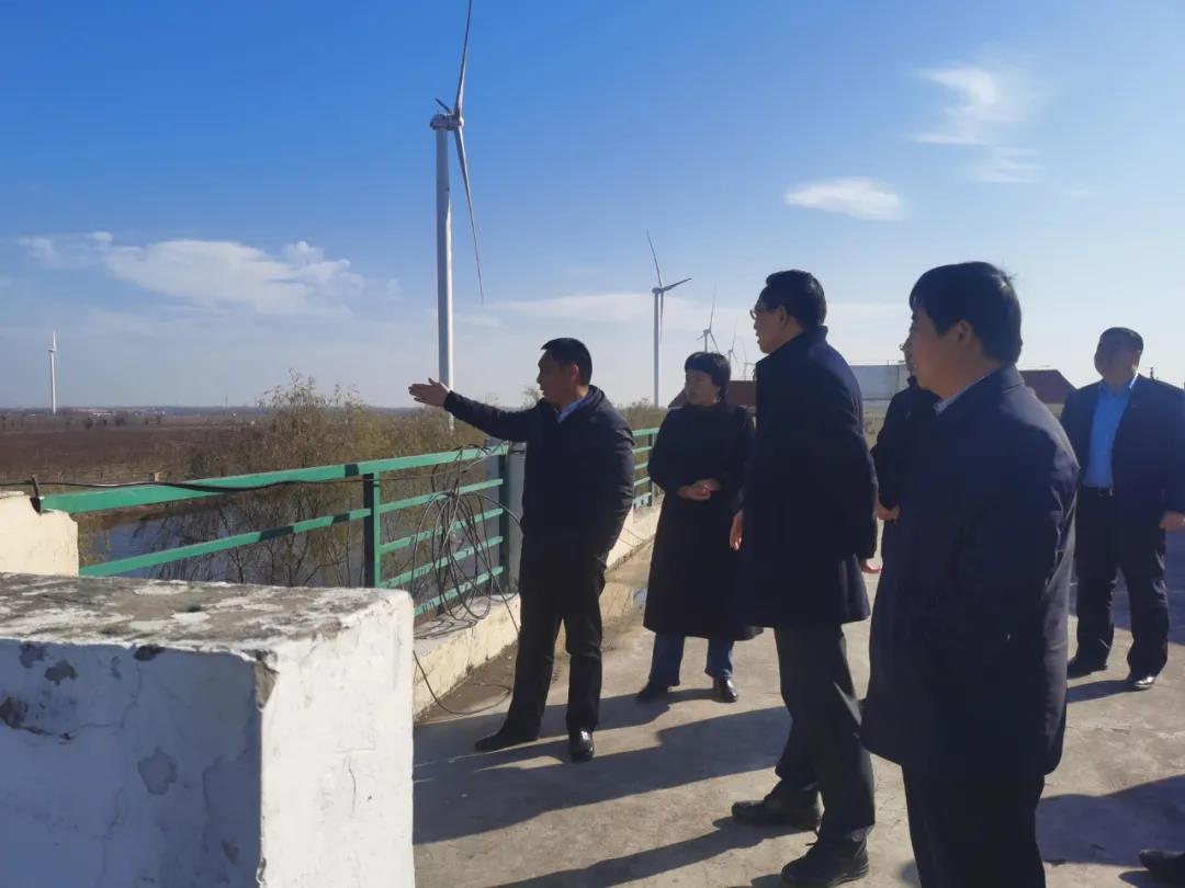 在白马坡高标准良田项目区,李业弟一行登上气象站楼顶,远眺白马坡高标准农田示范区建设情况,付进毓对白马坡的历史由来、演变过程及目前发展现状做了详细介绍。