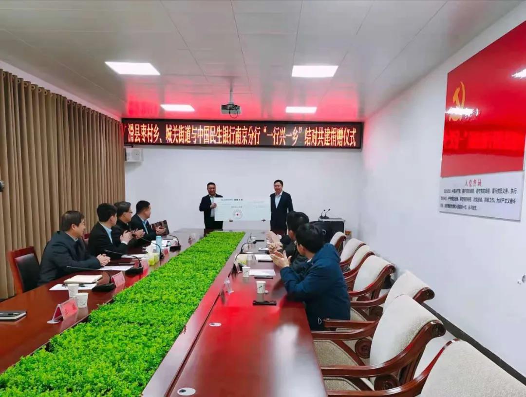 郑进武对中国民生银行南京分行再次表示衷心的感谢,同时,希望枣村乡利用好“一行兴一乡”对口帮扶平台和机遇,紧紧围绕共结一个对子、共扶一类产业、共育一批人才、共享一地生态、共促一方发展的工作理念,促进乡村振兴的实施,早日结出合作共建的丰硕成果!