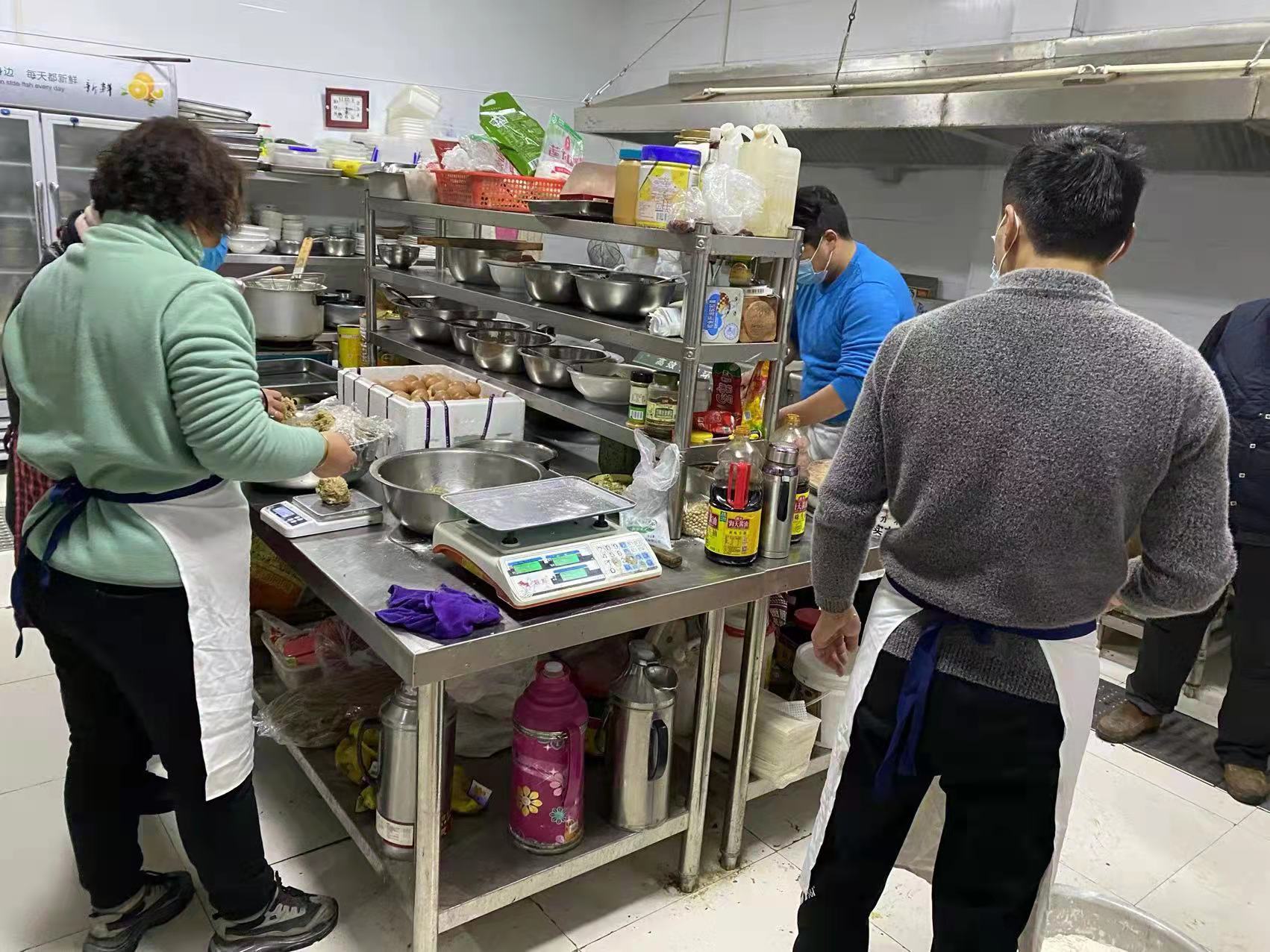 说做就做,在家人的支持下,蒋宁豪买来20斤牛肉、木耳、面筋等所需食材,早上3点就起床了,带上5个帮厨师傅,到瓦岗寨乡政府食堂现场做饭,他们分工合作,有人熬制胡辣汤,有人打牛肉盒子,有人烙葱花饼,在他们的忙碌下,战斗在“疫”线的工作人员吃上了美味的胡辣汤。