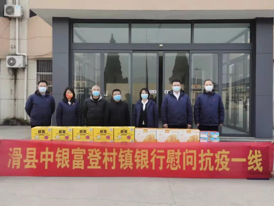 中银富登银行捐赠20箱桶装泡面、10箱手撕面包、8件火腿、4筐水果