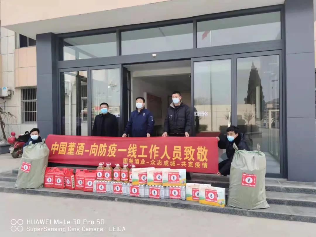 董酒滑县代理商捐赠5袋大米、5盒挂面、5桶食用油、5件矿泉水、20对灯笼