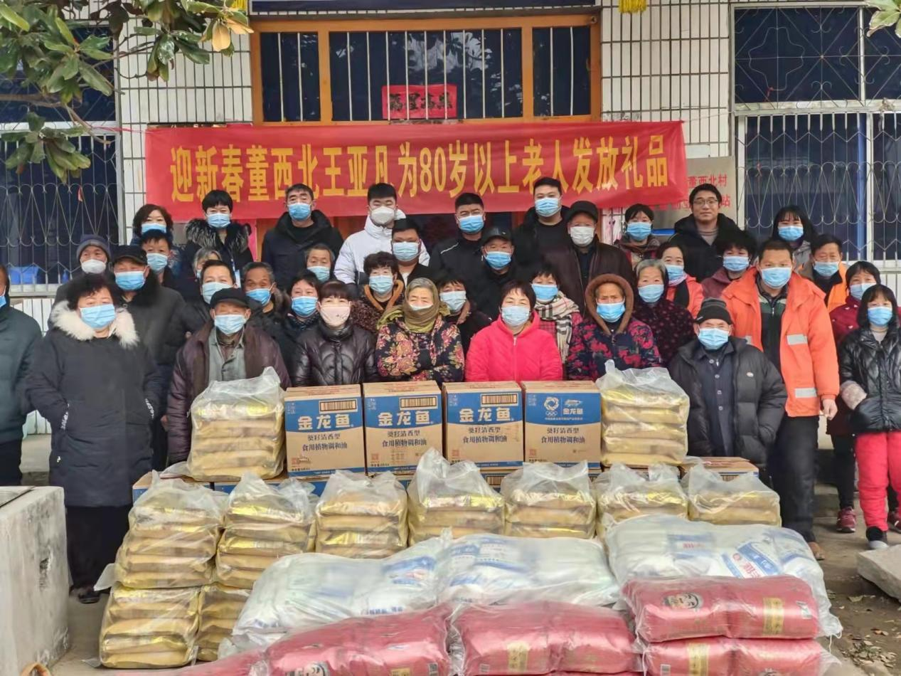 1月29日,董西北村00后王亚凡为本村80岁以上的80名老人送去了价值1万元的米面油等春节慰问品,分发慰问品时王亚凡表达了对家乡炽热的情感。