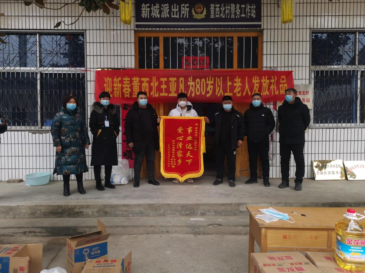 2001年出生的王亚凡,就职于滑县新鑫环保节能建材厂,负责销售业务工作。临近年关,一直想为生养自己的家乡做贡献,临近春节,他决定为家乡80岁以上的老人送新春慰问品。这次慰问也得到了董西北村广大父老乡亲的认可和赞扬,董西北村村委会也为王亚凡的善心善举送上了锦旗,表示感谢。