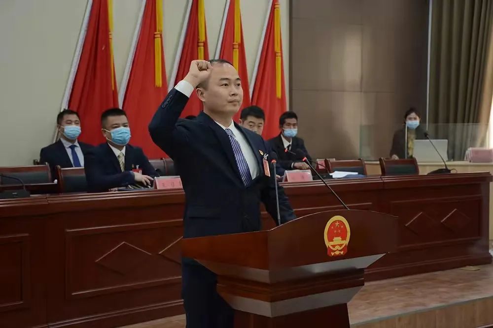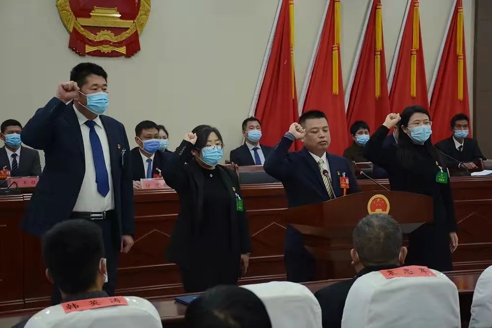 新当选乡长王日轩带领三名副乡长进行宪法宣誓