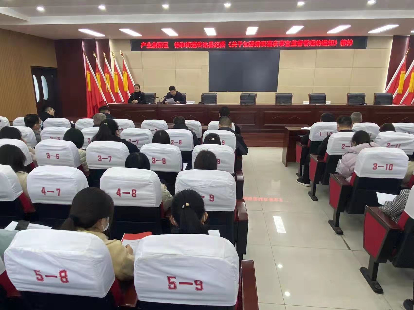会上,驻产业集聚区纪检组组长王建勇带领大家学习了县纪委《关于加强婚丧喜庆事宜监督管理的通知》精神,并从提高政治站位,严格落实“两个责任”、严明纪律要求,坚决做到“七个严禁”、加强日常监督,严查顶风违纪行为等内容进行了解读,进一步严明了婚丧喜庆事宜纪律要求。
