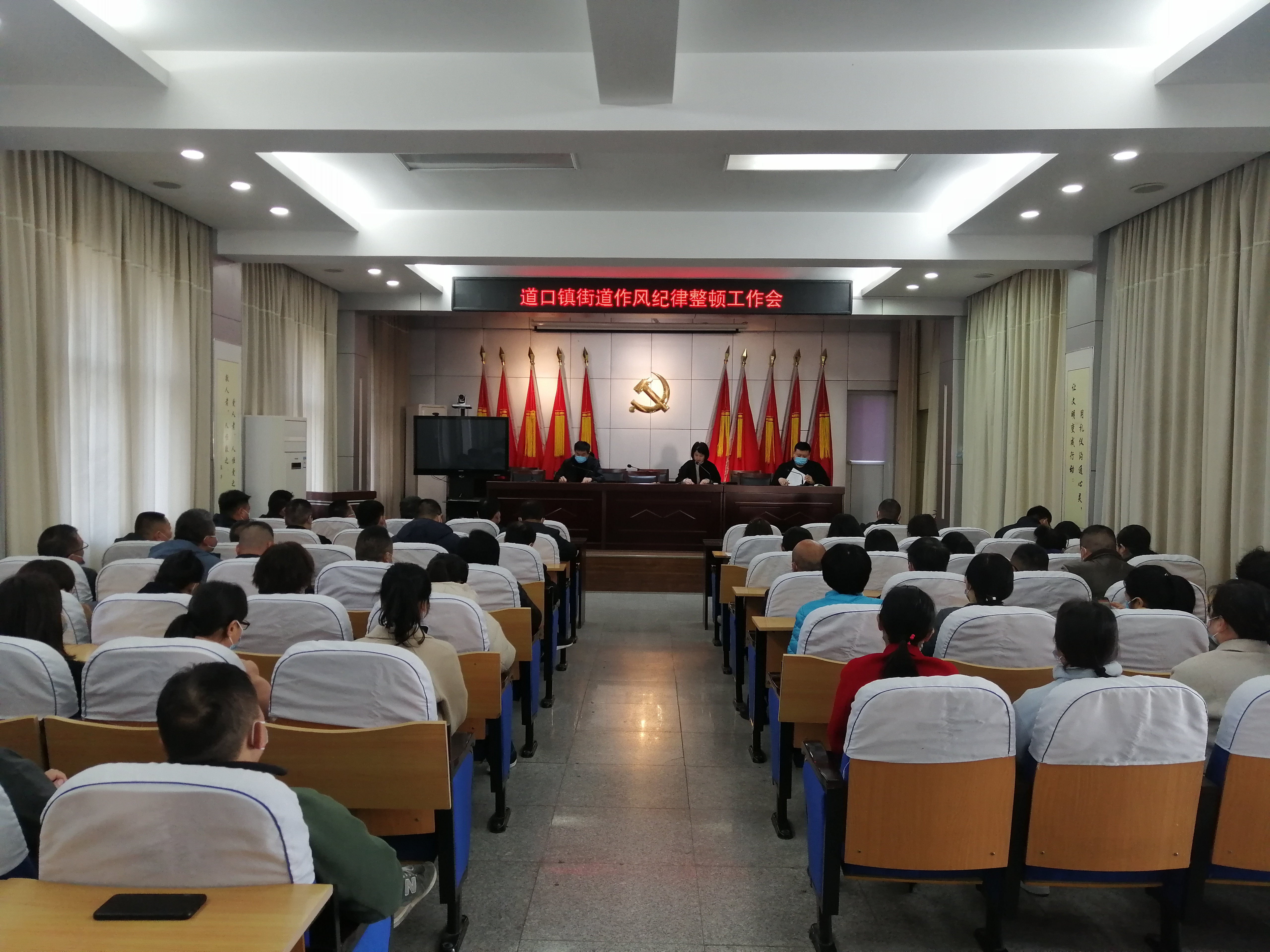 2022年4月1日上午,道口镇街道组织召开作风纪律整顿工作会,机关全体干部职工参加会议。