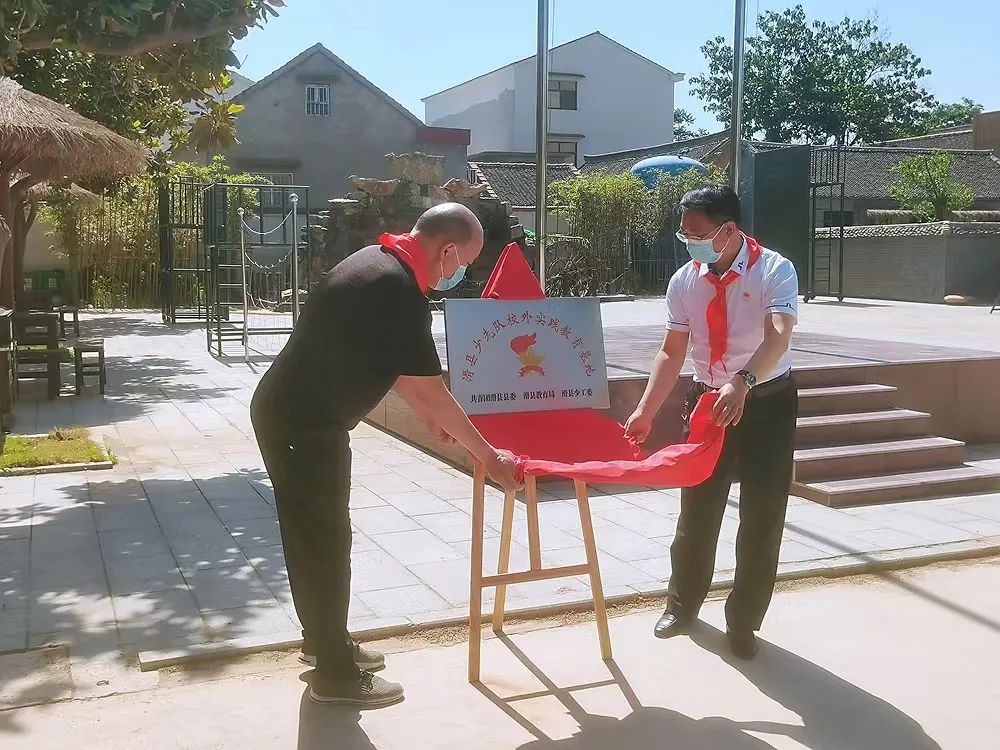 在热烈的气氛中,由中小学校党工委副书记李振君、滑县中小学社会实践基地副校长刘新建共同为“滑县少先队校外实践教育基地”揭牌。