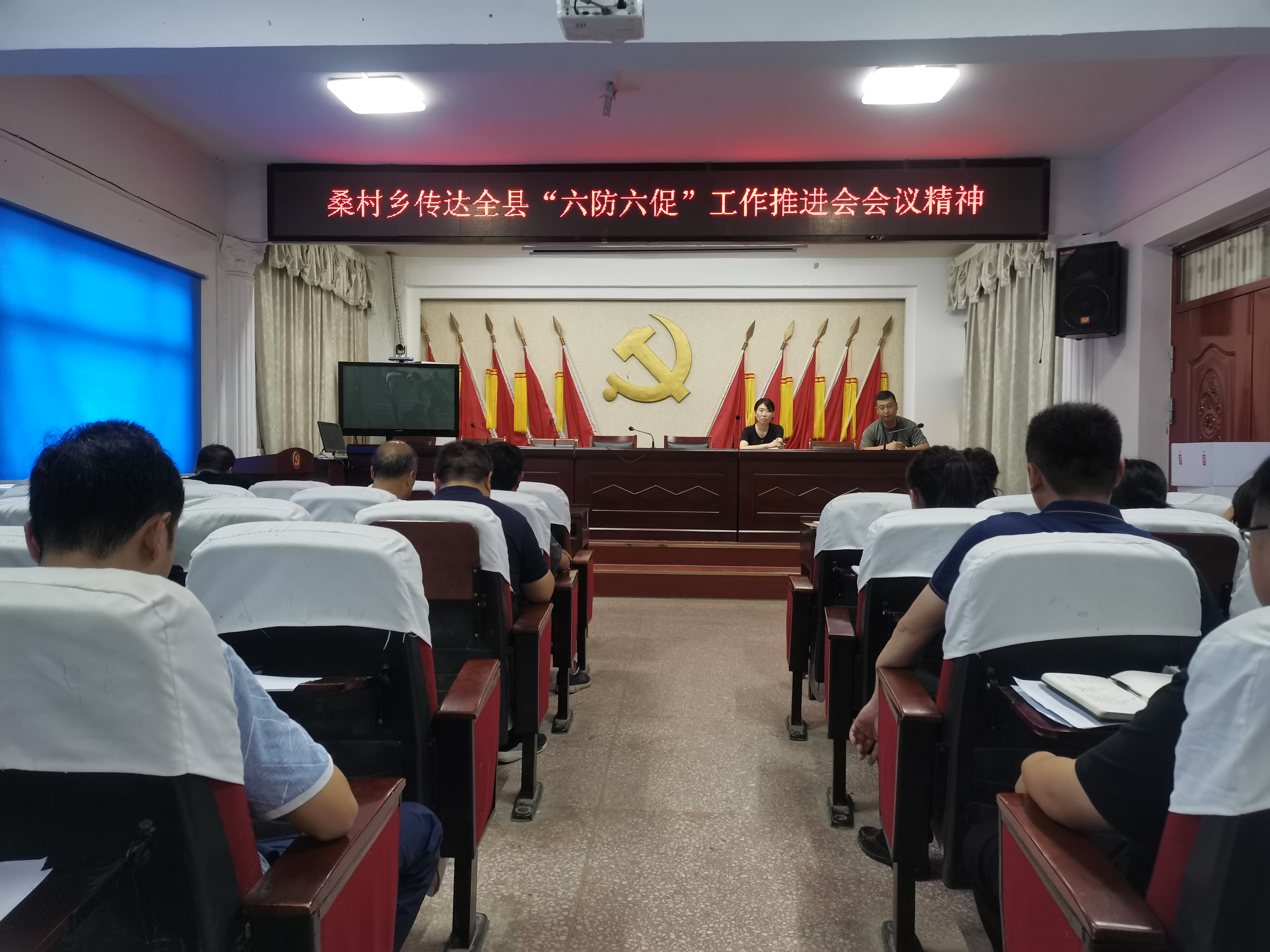 6月23日上午,桑村乡组织机关全体干部、各行政村村支部书记召开专题会议,传达全县“六防六促”工作推进会会议精神。