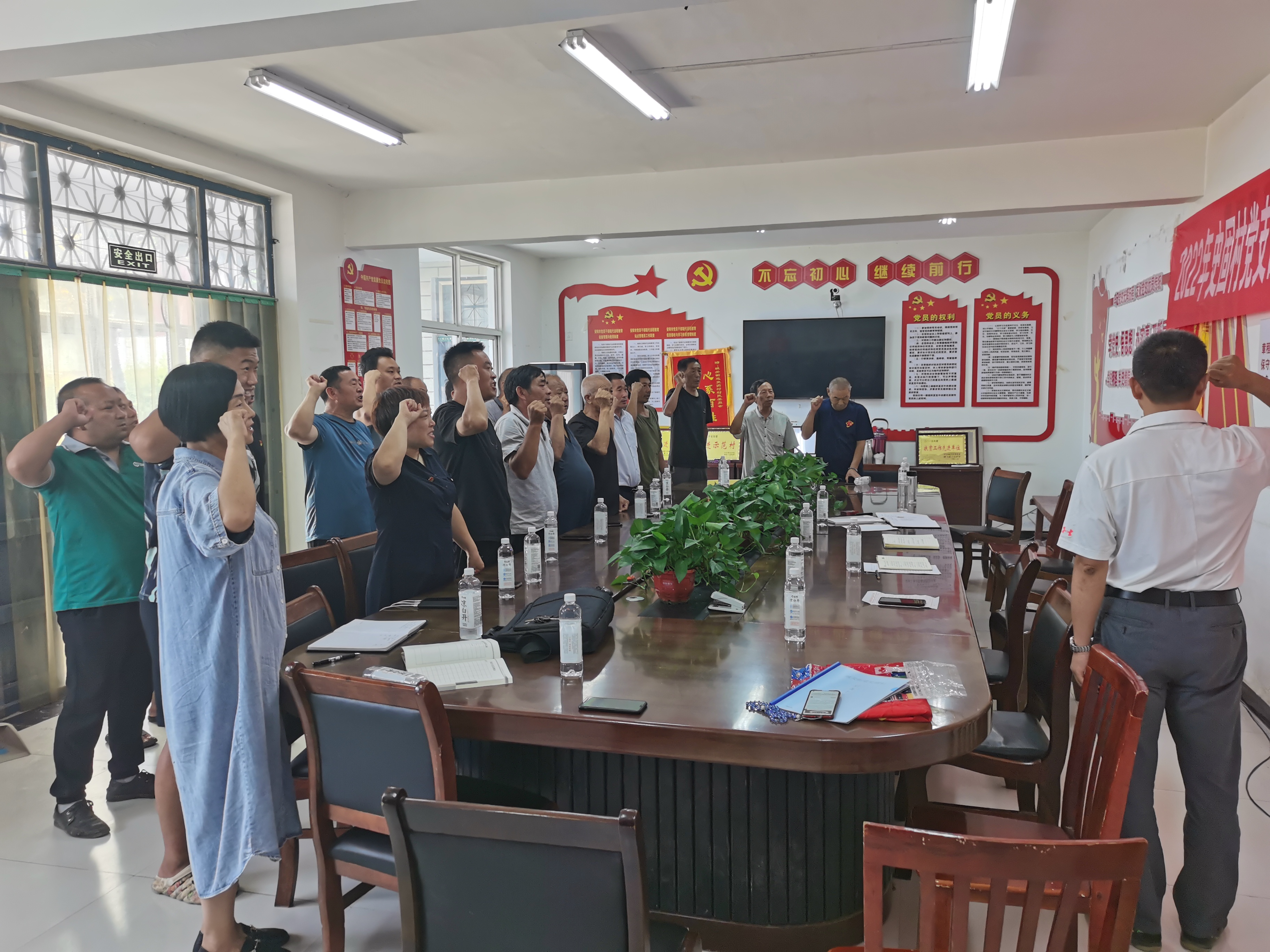 活动伊始,全体党员起立奏唱国歌,驻村第一书记郭强带领大家重温入党誓词。