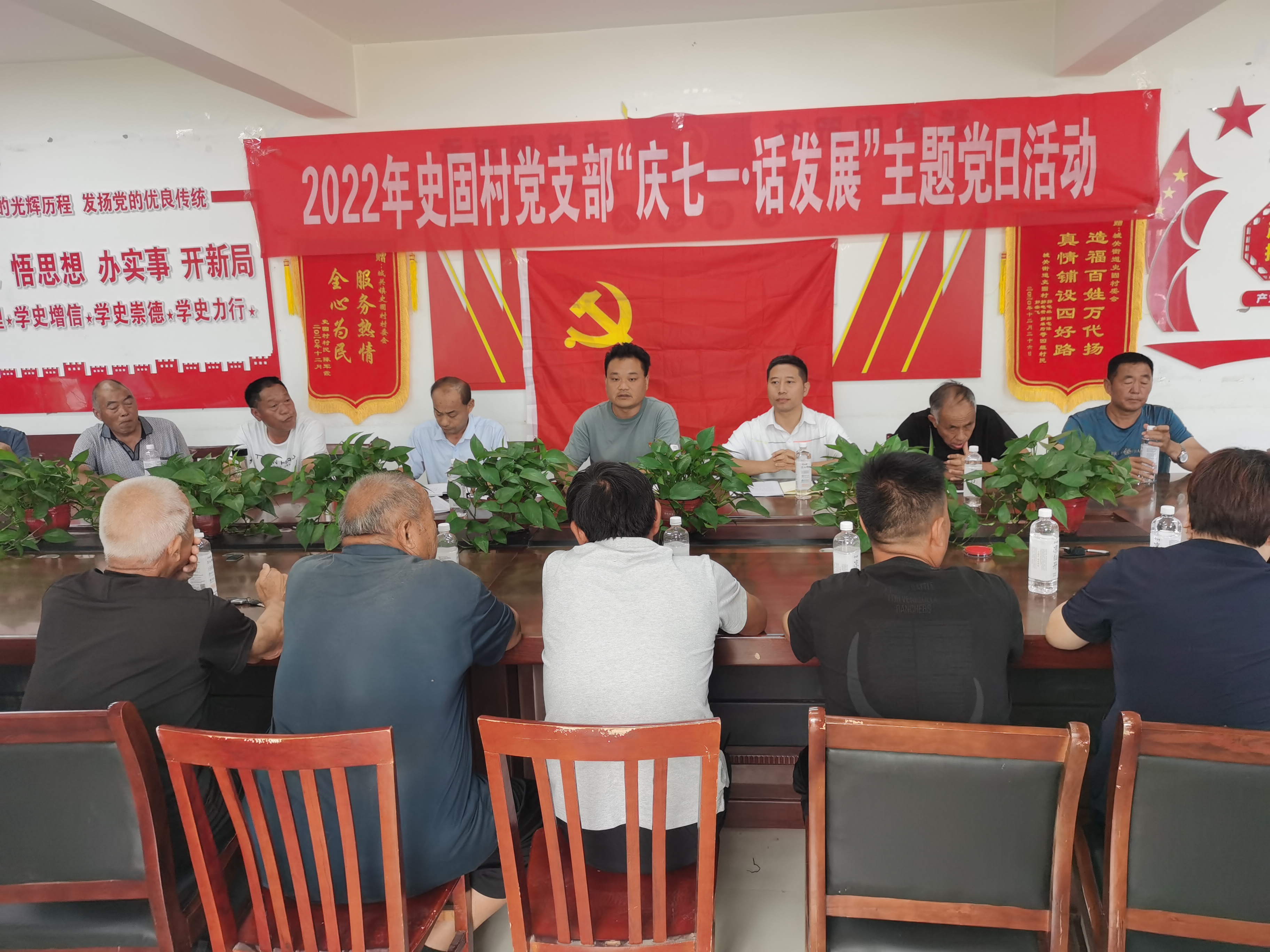 为进一步激发广大党员干部爱党爱国情怀和干事创业热情,6月30日上午,城关街道史固村党支部开展“庆七一·话发展”主题党日活动。