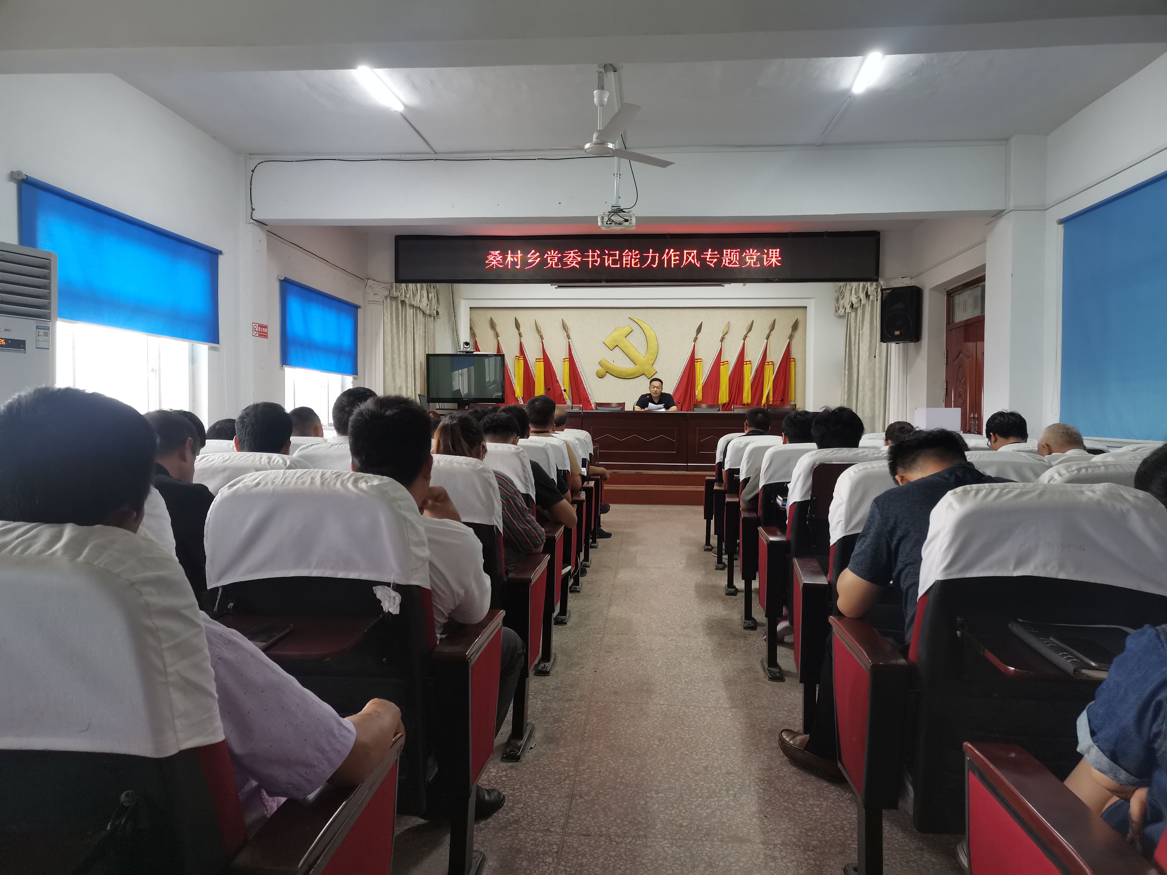 为扎实推动“能力作风建设年”活动落地见效,全面促进全乡党员干部解放思想、提升能力、转变作风,7月22日上午,桑村乡党委书记申亮亮为全乡机关干部、各村支部书记上了一堂生动的能力作风专题党课。