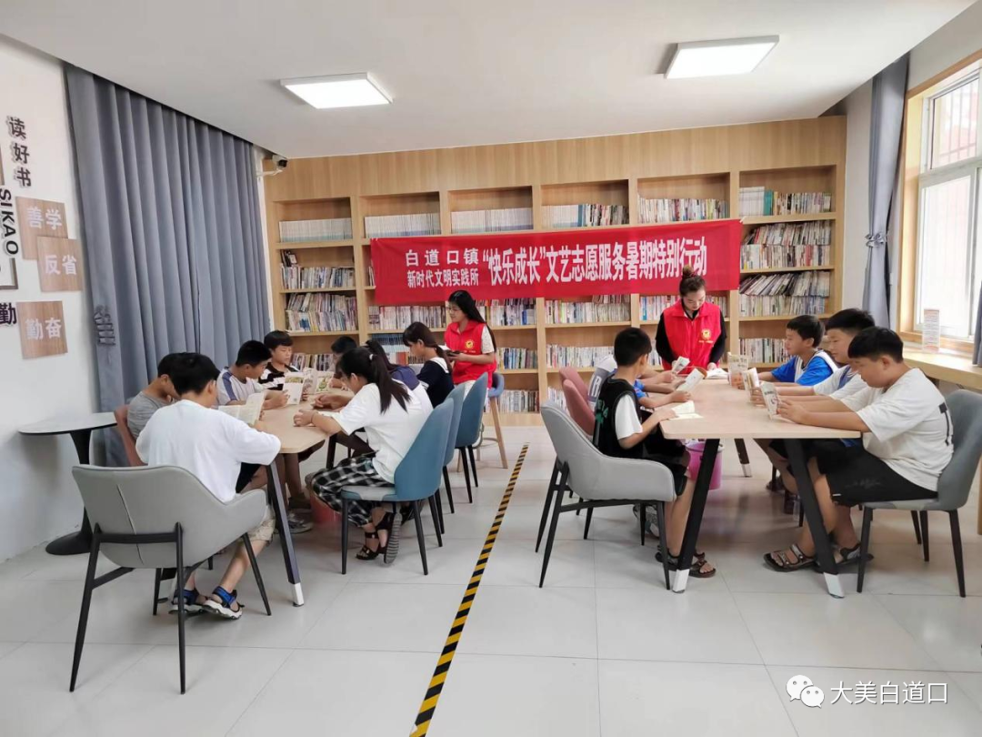小朋友们在舒适凉爽的活动室里与志愿者们度过了一个有意义的上午,此次志愿活动,不仅拓展了孩子们的视野,增长了知识,发挥了小朋友们的想象力、创造力,还为小朋友们营造了想读书、爱读书、会读书的良好氛围。下一步,白道口镇将继续加强工作统筹,将大学生社会实践活动与新时代文明实践所有机结合,探索开展多样童趣活动,让小朋友们在形式多样的文艺活动和经典诵读中快乐成长。