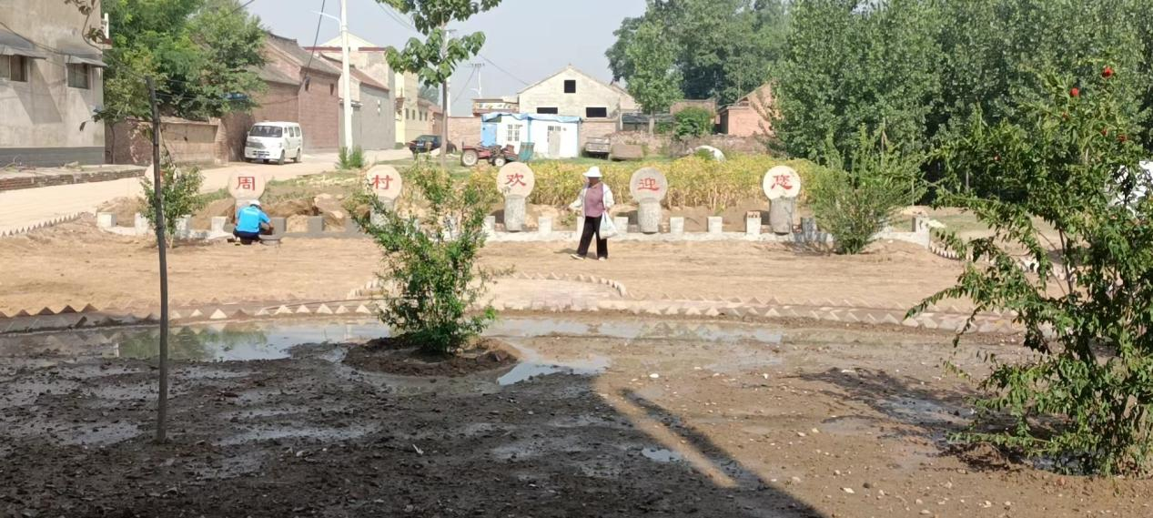 周村在村党支部牵头下,依托村民理事会筹资到的30000余元资金,将村里废弃坑塘回填、杂草垃圾清理,将整合出来的300余平方土地铺上草坪、栽上绿化树,建成了集游园、花园一体的综合性小公园,成为了村民茶余饭后的好去处。
