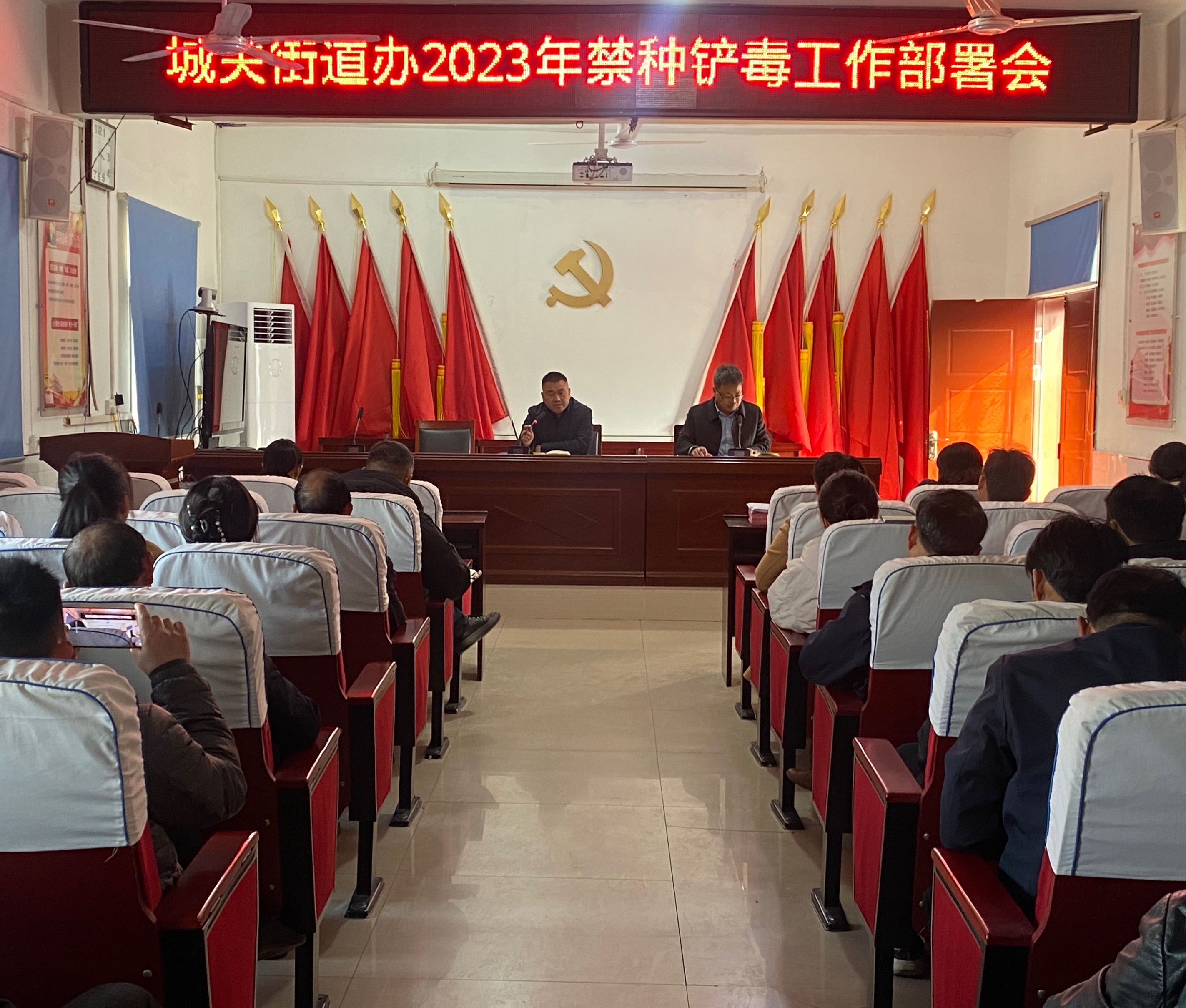 2月22日,城关街道组织召开2023年禁种铲毒工作部署会。街道班子成员、机关干部、相关部门、各村(社区)支部书记参加会议。