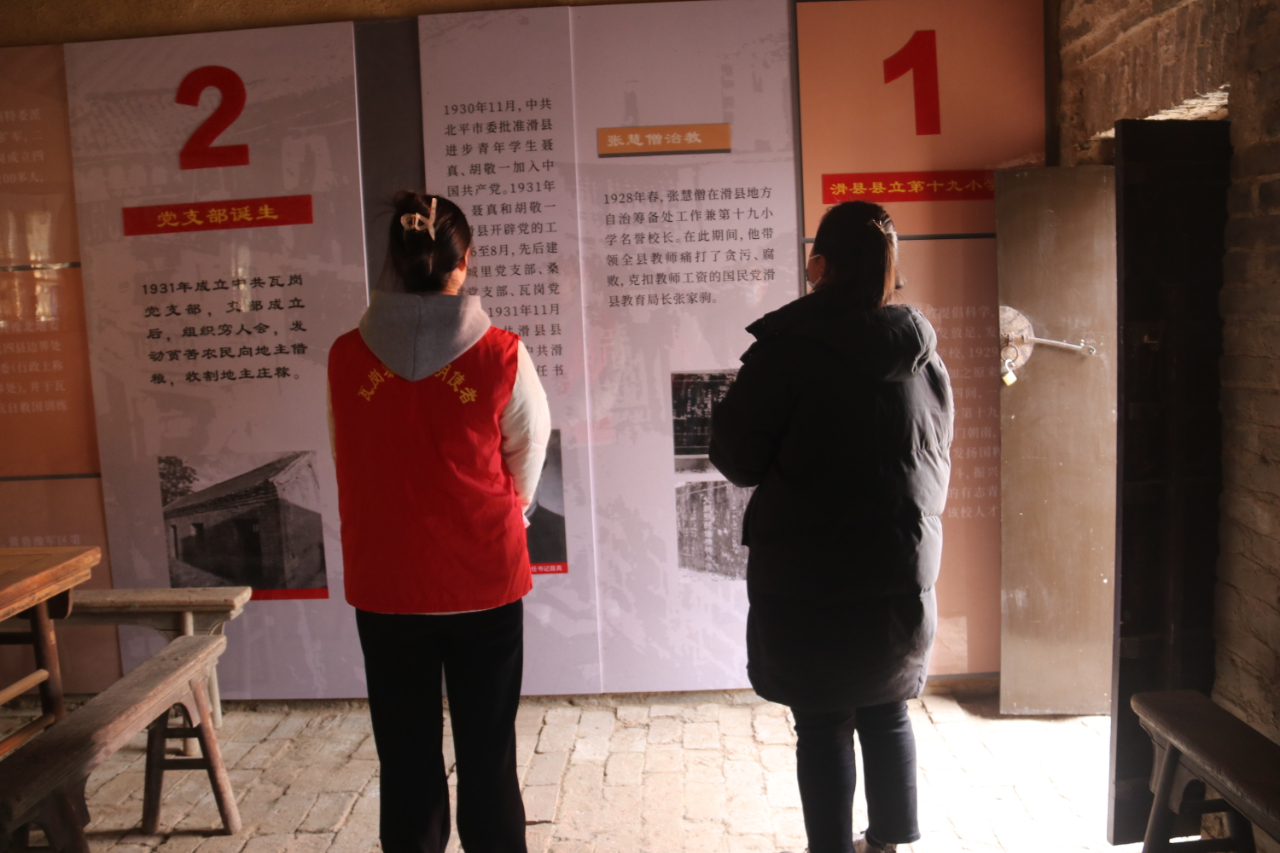 在瓦岗寨乡红色教育基地,党委副书记孟凡和新时代文明实践所志愿者为大家详细介绍了滑县第一批党支部遗址瓦岗小学成立的背景,讲述了革命先辈在这里浴血奋战的革命历史,让大家深入了解滑县革命先辈苦难辉煌的红色历史,感悟一代代共产党人的坚定信念与赤子情怀。