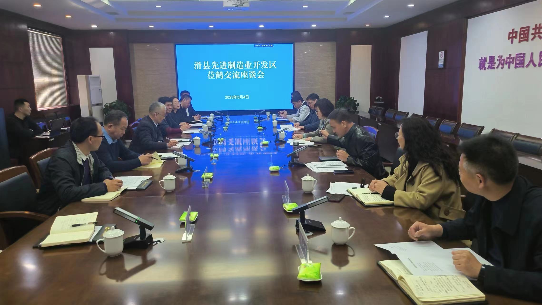 随后,双方开展座谈交流,交流会上首先观看了鹤壁经济技术开发区、鹤壁经开投资集团宣传片,学习了解鹤壁经开区的先进经验与做法。鹤壁经济技术开发区管委副主任刘保菊对滑县开发区的到来表示热烈欢迎。鹤壁经开投资集团董事长直建彬汇报了经开集团的运营情况,经开集团坚持市场化、专业化和国际化的灵活高效管理原则,各项工作开展扎实,形成政府“有形之手”和市场“无形之手”协调联动、双向发力的发展格局。