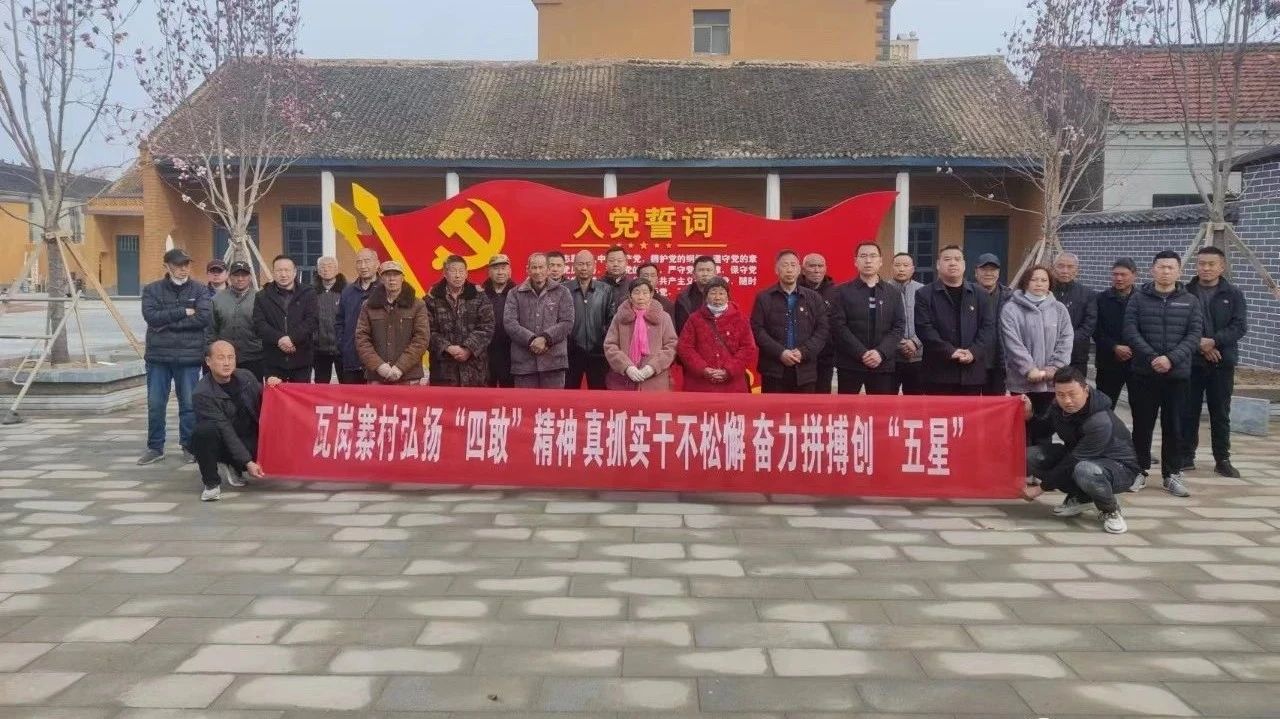 3月18日上午,瓦岗寨乡瓦岗寨村开展“干部敢为、地方敢闯、企业敢干、群众敢首创”主题活动。通过重温入党誓词、支部书记讲党课、党员志愿服务、参观红色教育基地等活动,充分激发了全体党员的干事创业热情,进一步弘扬了敢想敢干、务实担当的党员干部精神。