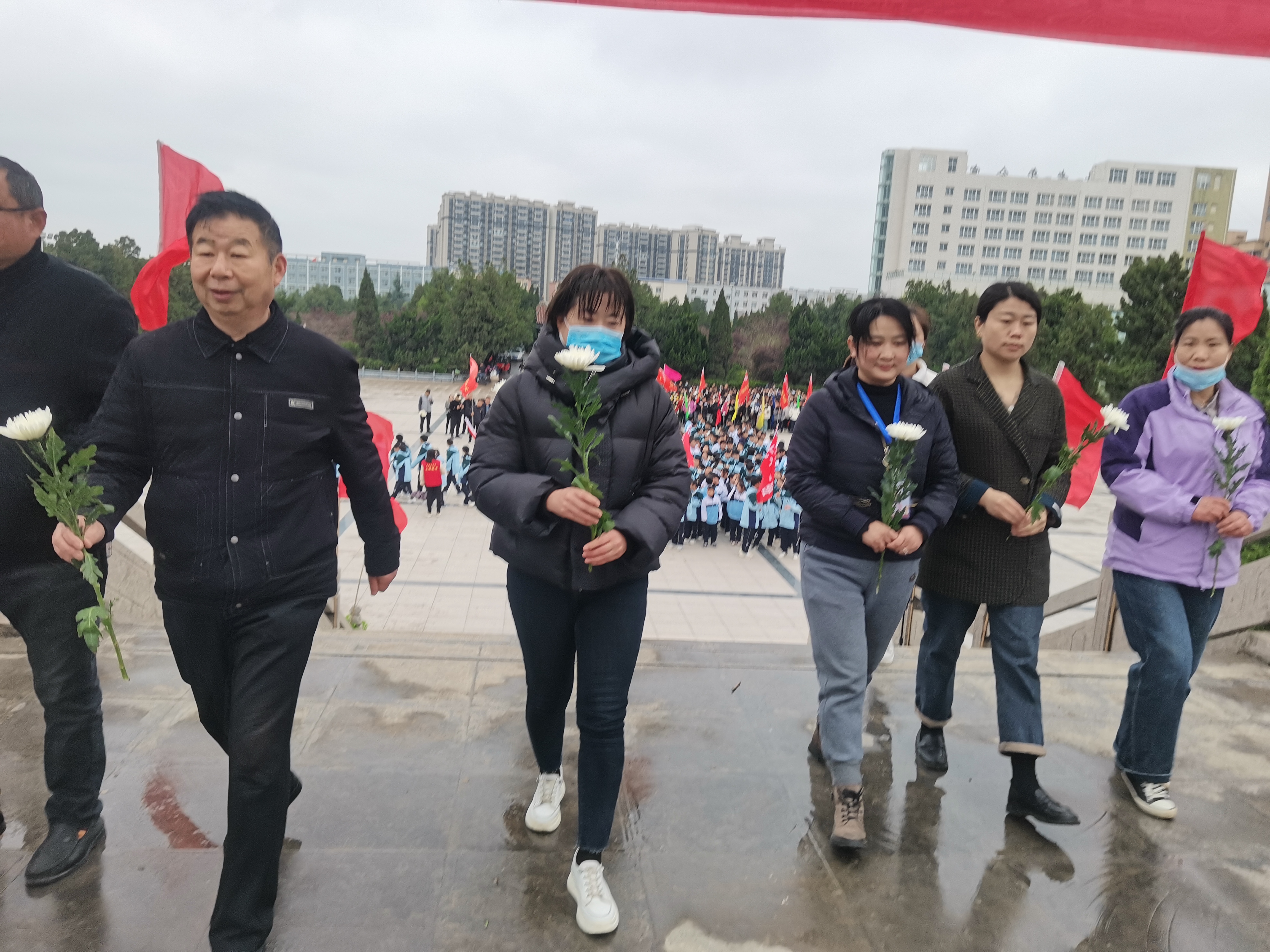 活动现场,在庄严的烈士纪念碑前,社区全体工作人员向革命烈士纪念碑鞠躬默哀,满怀无比崇敬之情,向革命烈士敬献鲜花,深情缅怀逝去的英魂。