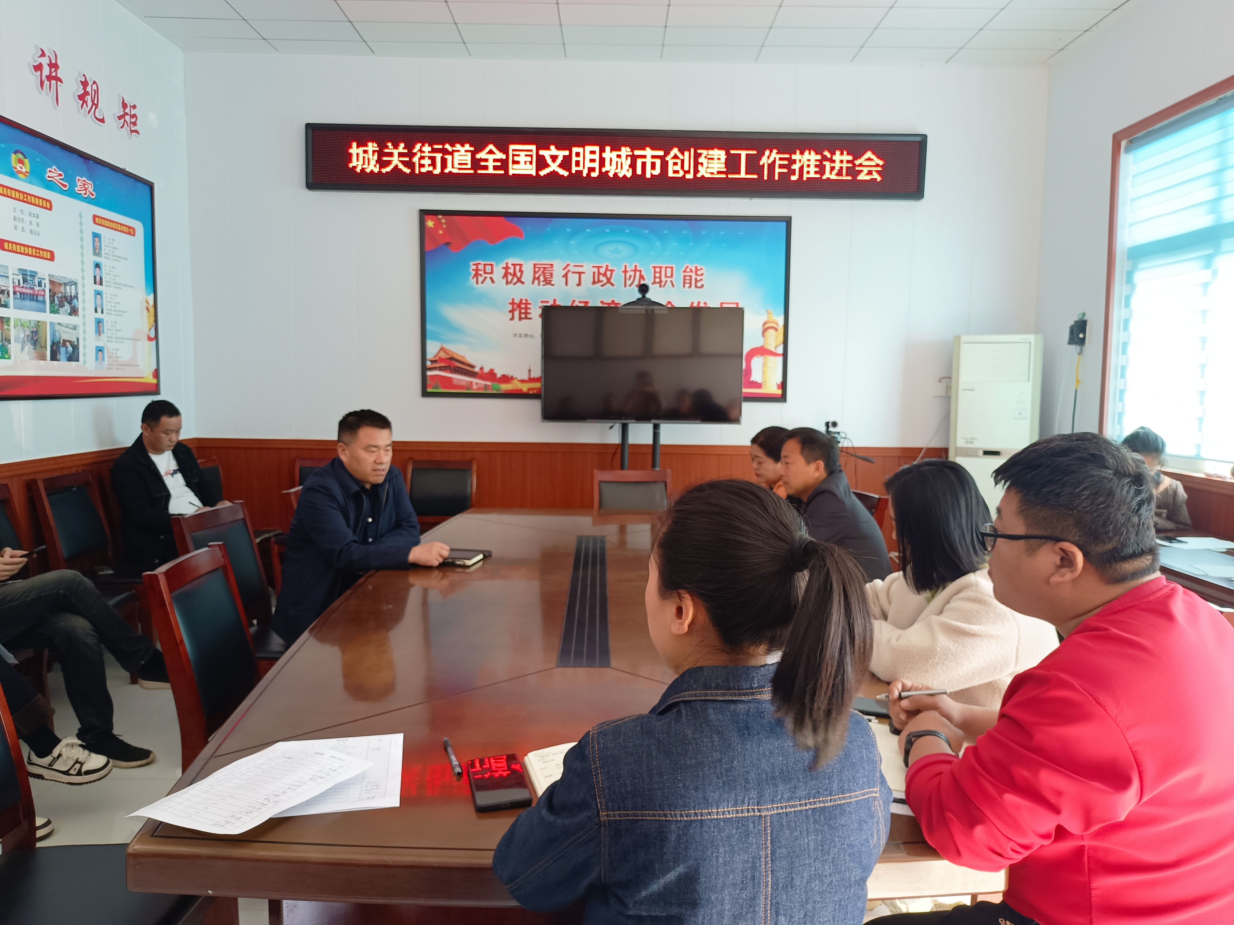 4月8日上午,城关街道召开全国文明城市创建工作推进会,安排部署文明城市创建工作,相关班子成员、各社区党总支书记、强弱电部门负责人参加会议。会议由党工委书记张红星主持。