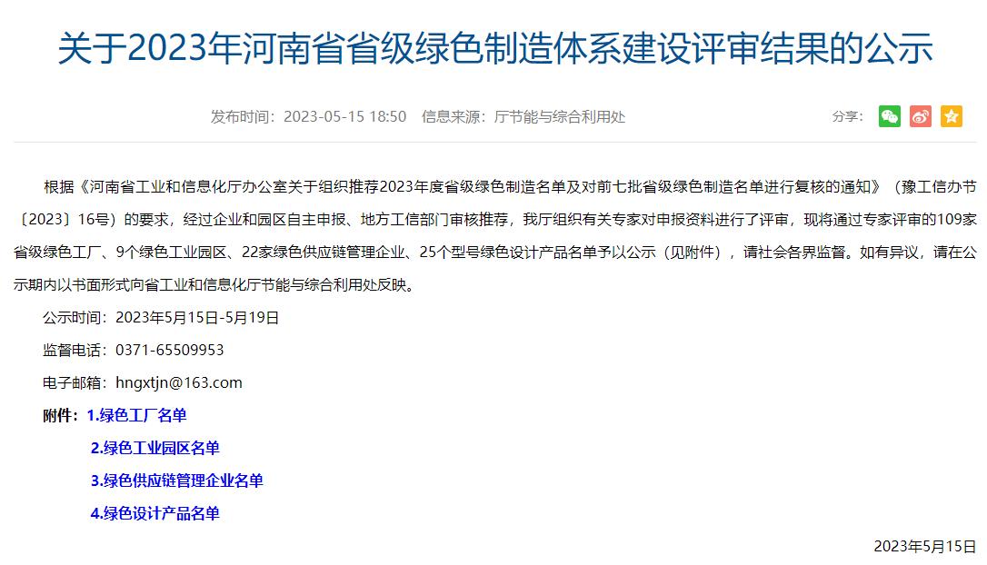 此次评选旨在落实《“十四五”工业绿色发展规划》,助力工业领域实现碳达峰、碳中和目标,全省共有9家工业园区上榜“绿色工业园区”,109家企业上榜“绿色工厂”,位于开发区内的河南盛达光伏科技有限公司,也在本次公示名单中。截至目前,开发区已获国家级绿色工厂3家、省级绿色工厂3家、省级绿色工业园1家。