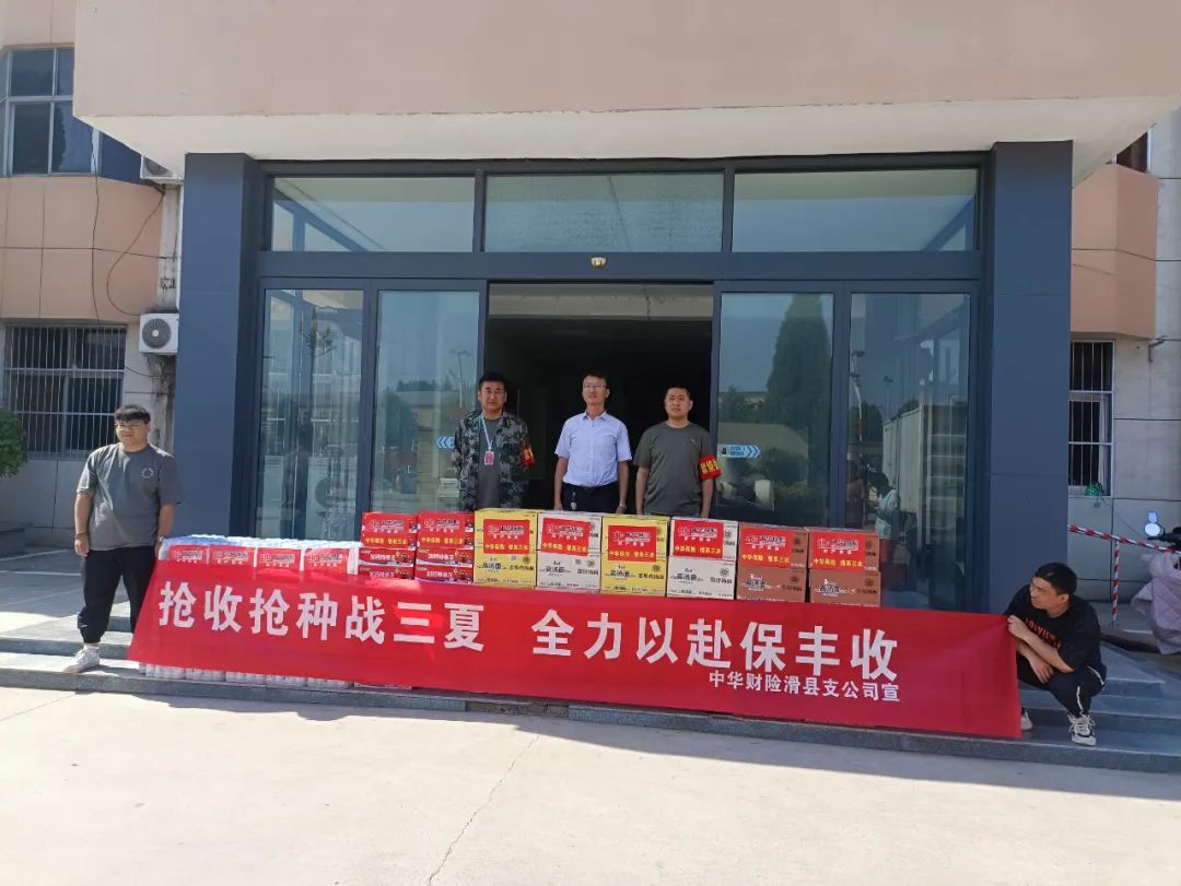 中华财险滑县支公司捐赠矿泉水20件、火腿20件、泡面30件